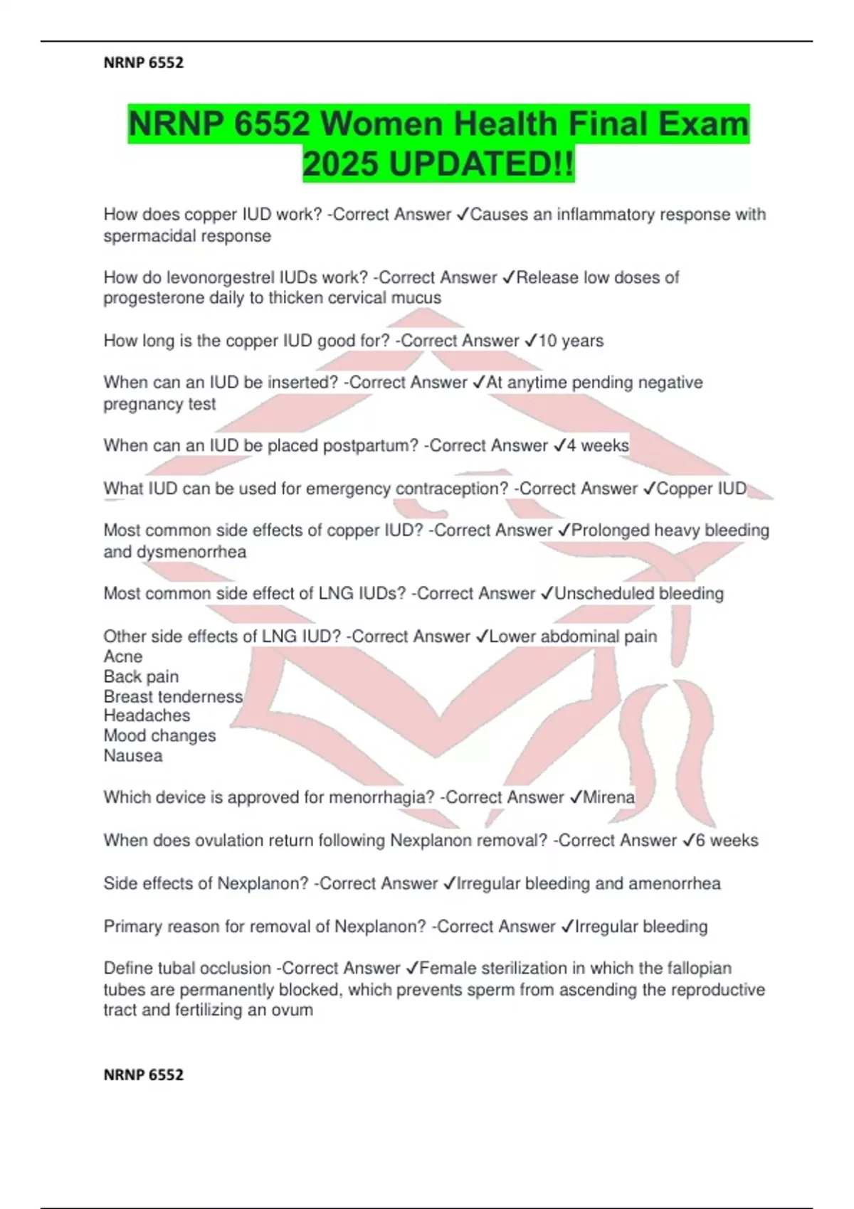 NRNP 6552 Women Health Final Exam