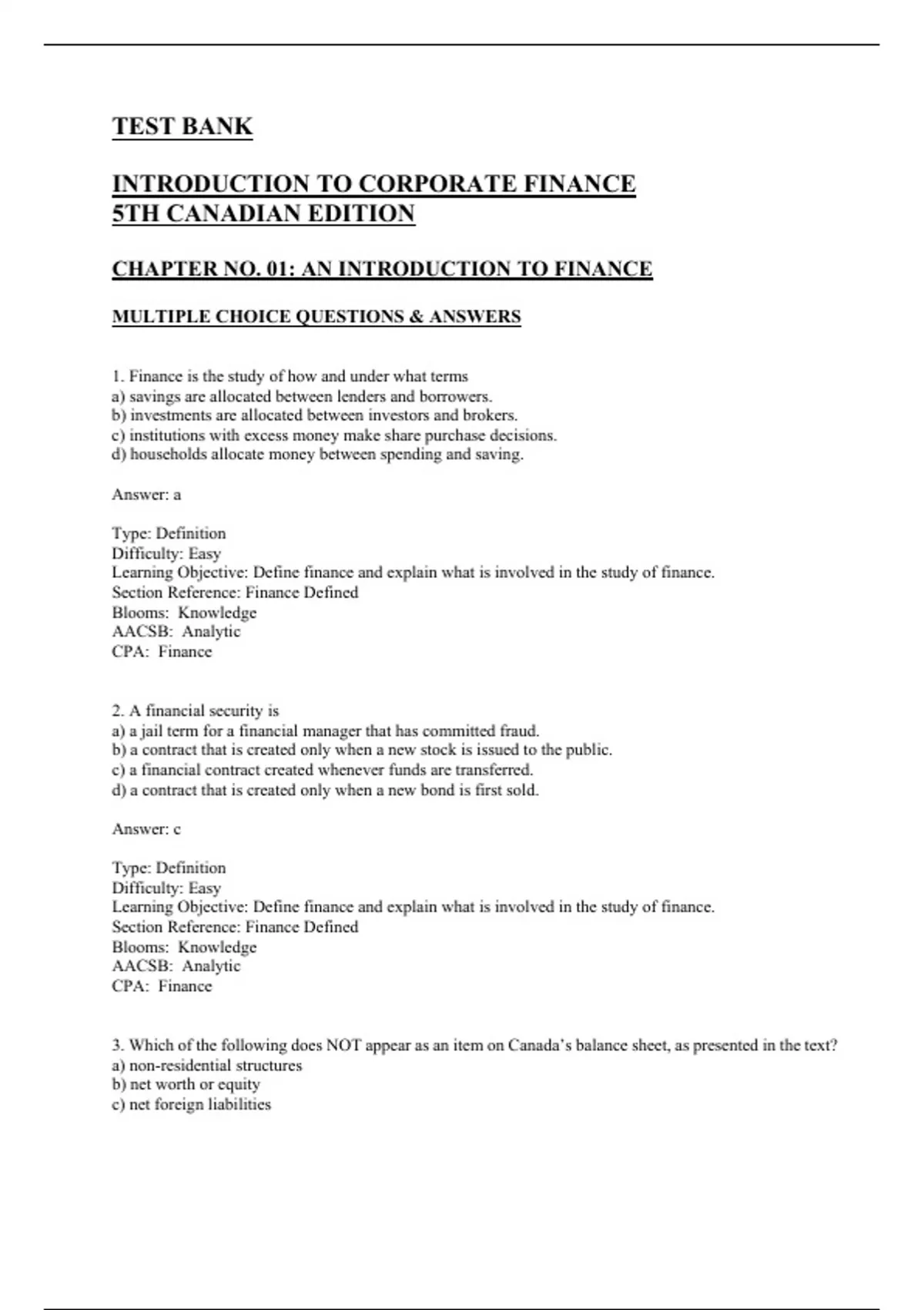 CHAPTER NO. 01: AN INTRODUCTION TO FINANCE