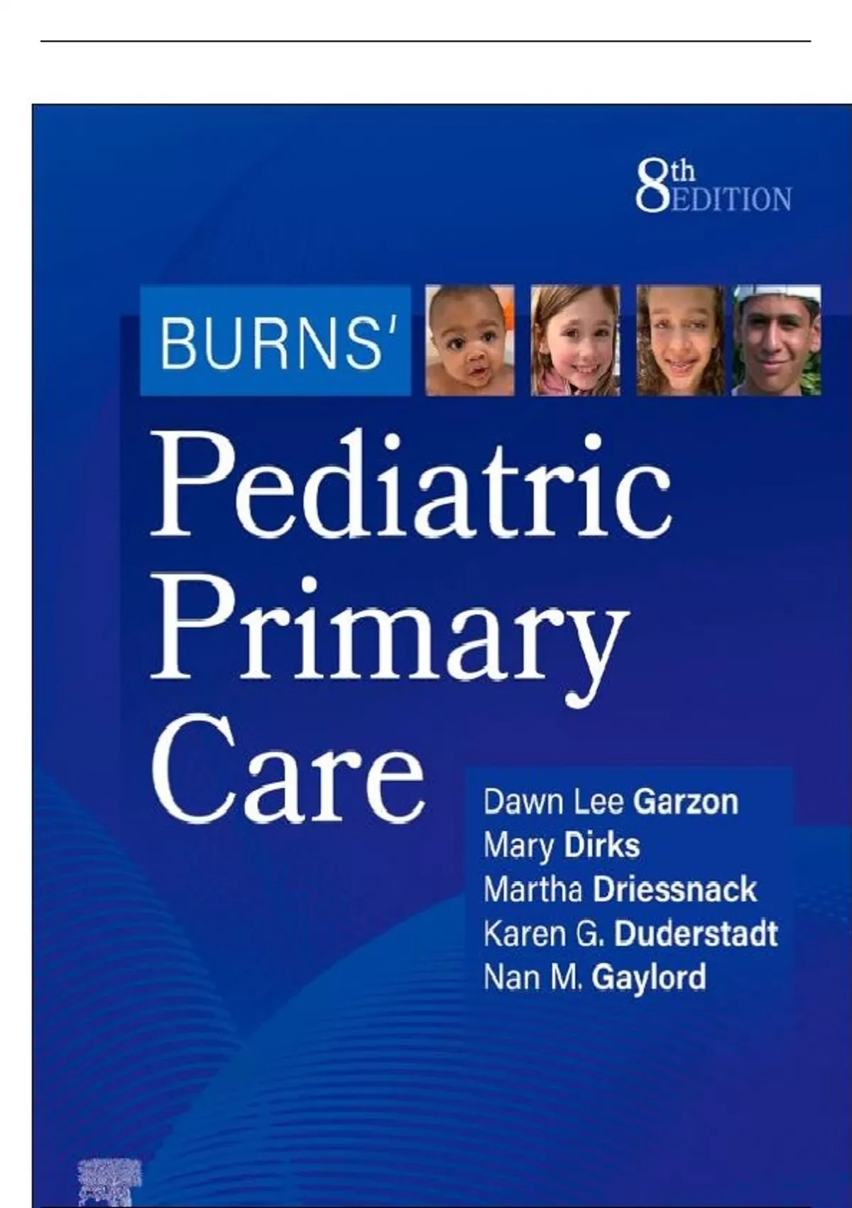 TEST BANK -- BURNS' PEDIATRIC PRIMARY CARE - E-BOOK 8TH EDITION, KINDLE EDITION BY DAWN LEE GARZON, MARY DIRKS, MARTHA DRIESSNACK, KAREN G. DUDERSTADT, NAN M. GAYLORD ALL CHAPTERS INCLUDED.
