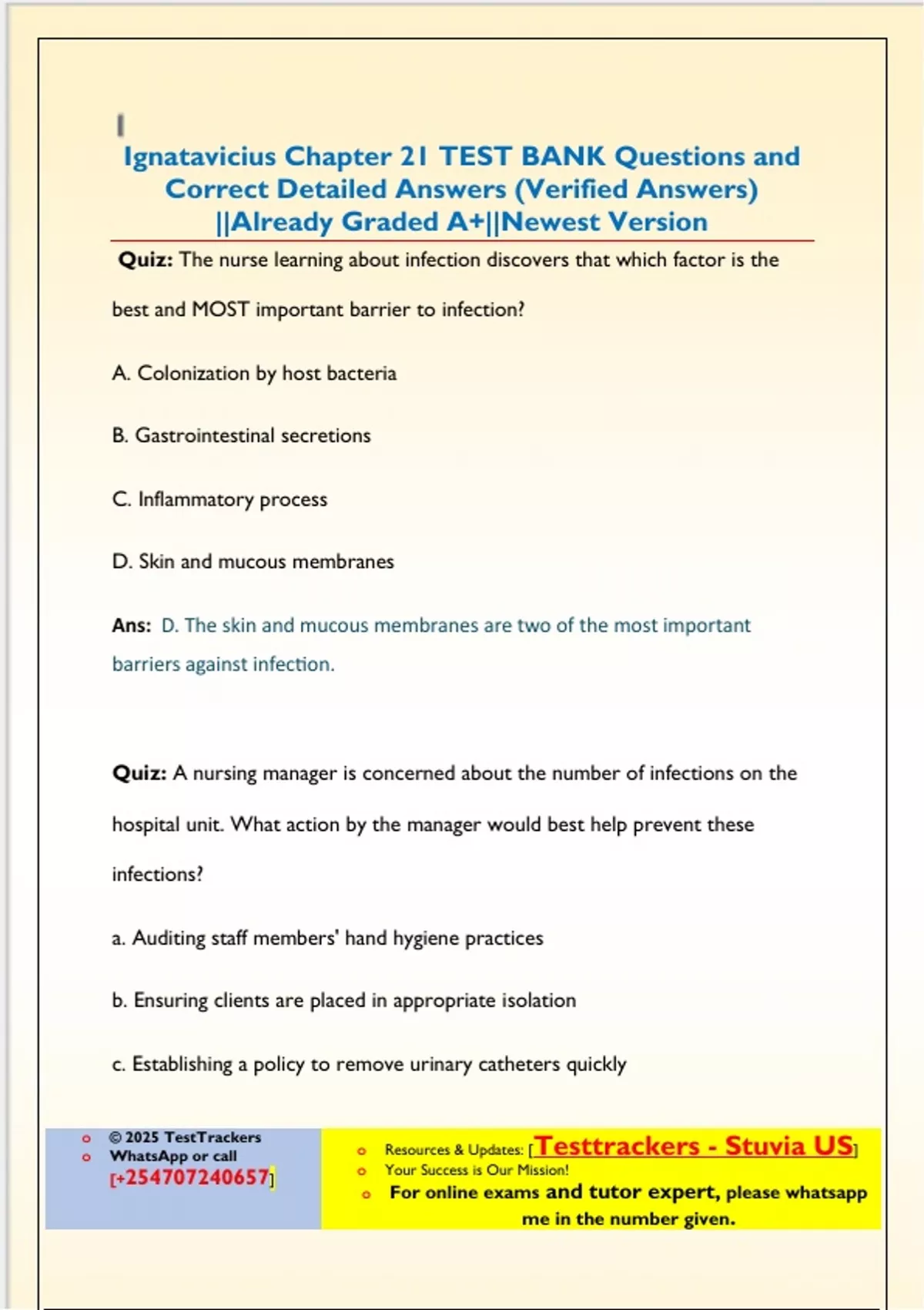 WhatsApp or call o Resources & Updates: [Testtrackers - Stuvia US]
