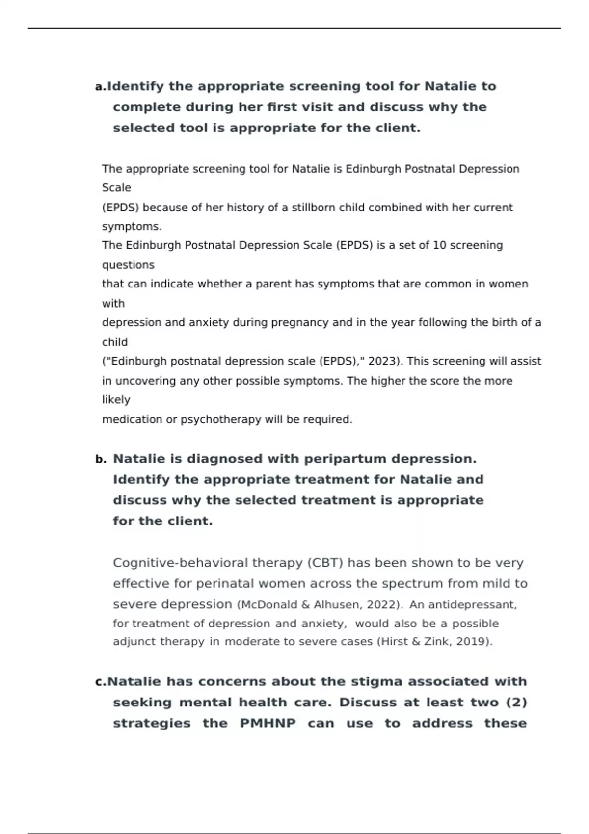 2. Education. Educating Natalie on perinatal depression and