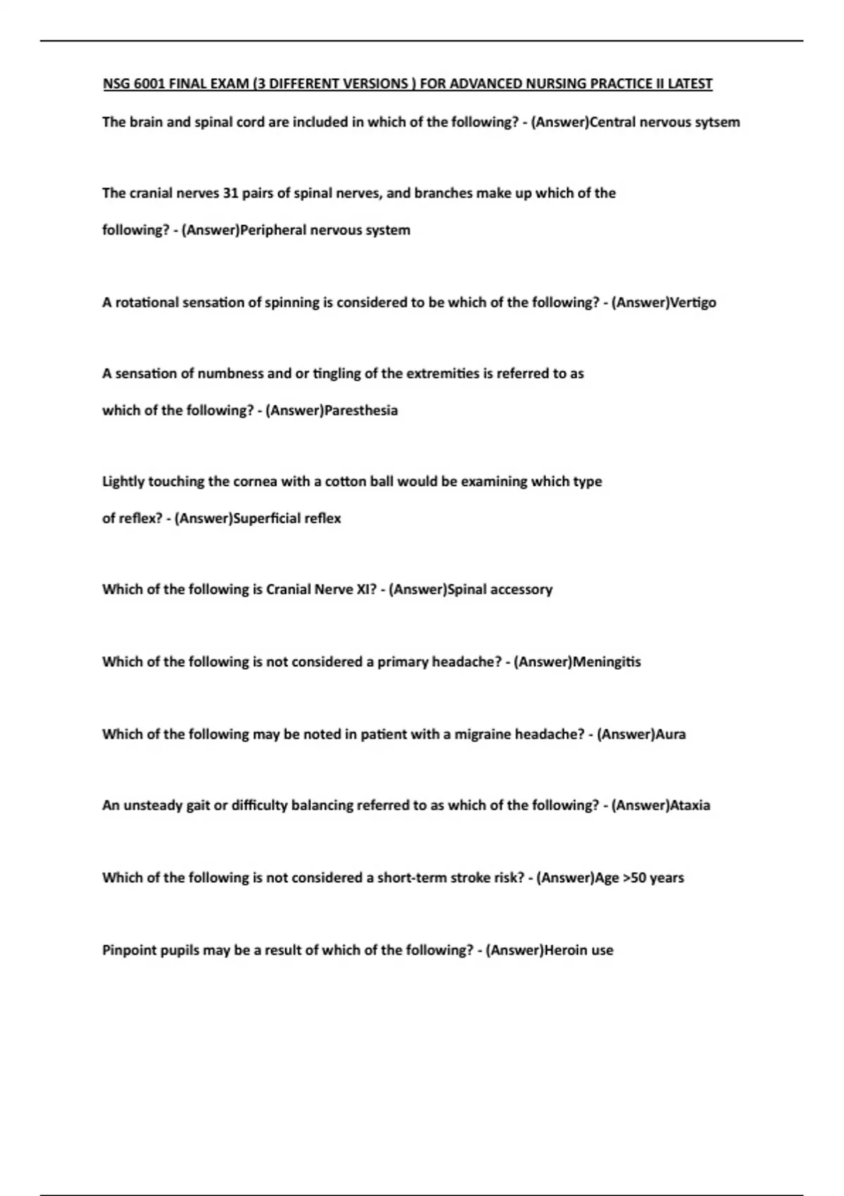 , NSG 6001 FINAL EXAM (3 DIFFERENT VERSIONS ) FOR ADVANCED NURSING PRACTICE II LATEST