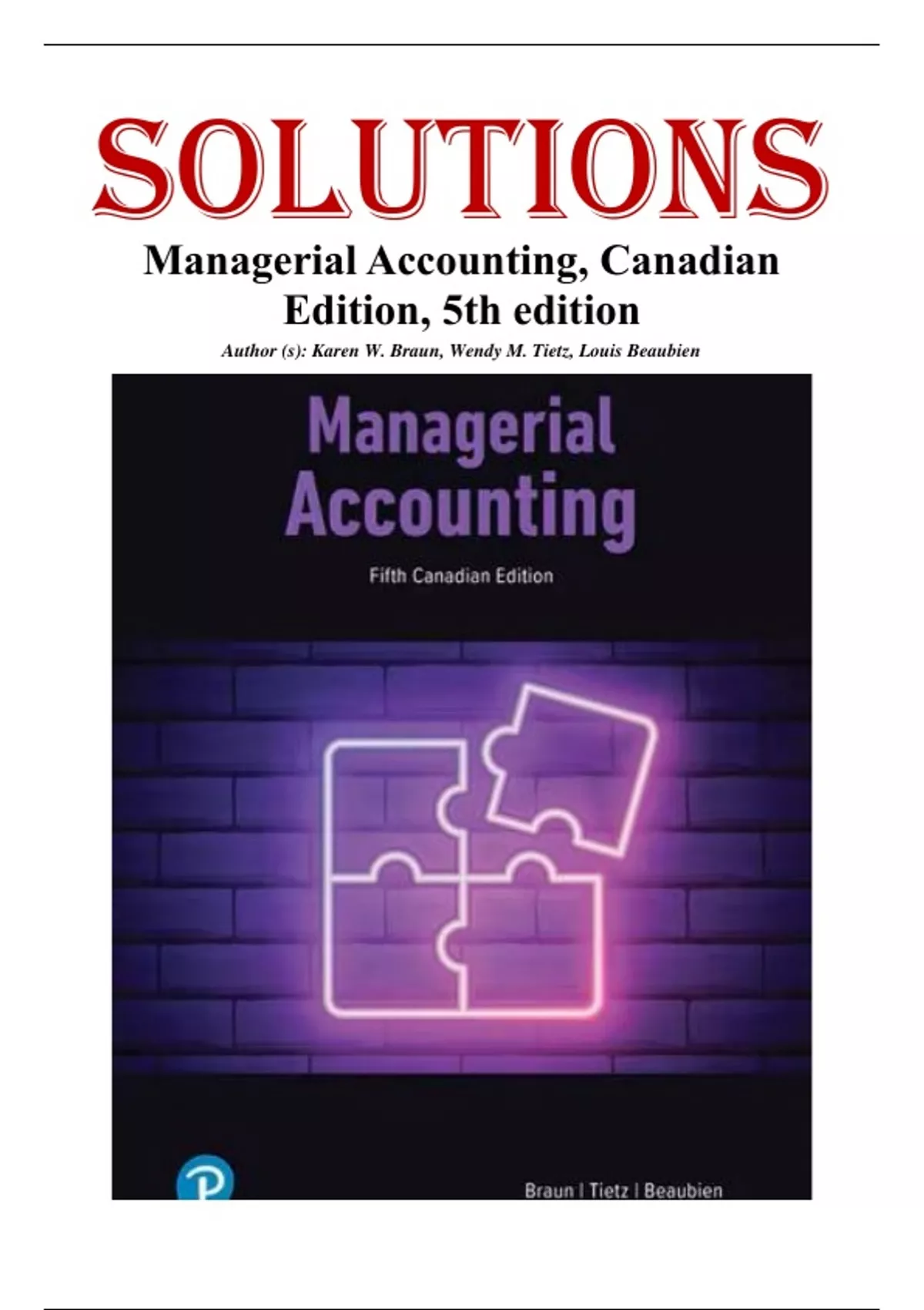 Solutions for Managerial Accounting, Canadian Edition, 5th edition by Braun