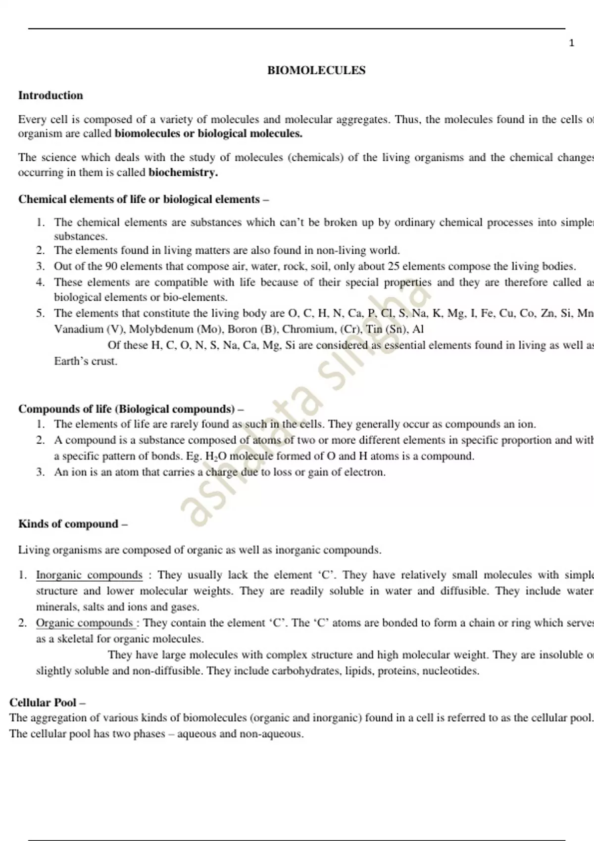 1. The elements of life are rarely found as such in the cells. They generally occur as compounds an ion.