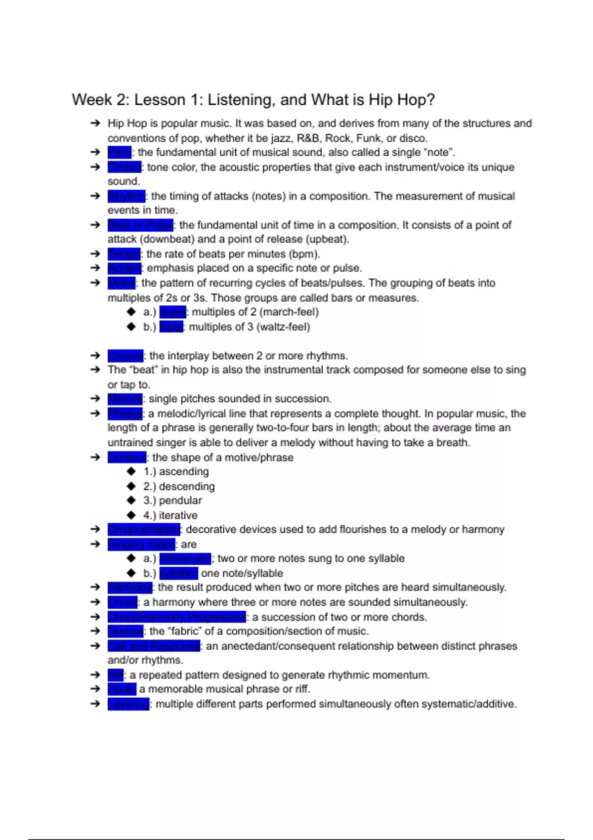 Week 2: Lesson 1: Listening, and What is Hip Hop?