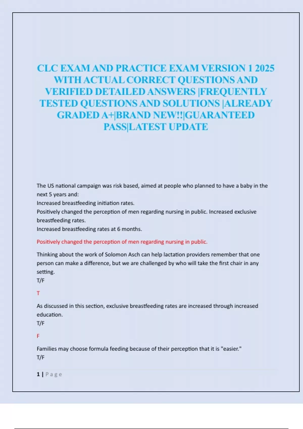 CLC EXAM AND PRACTICE EXAM VERSION 1 2025