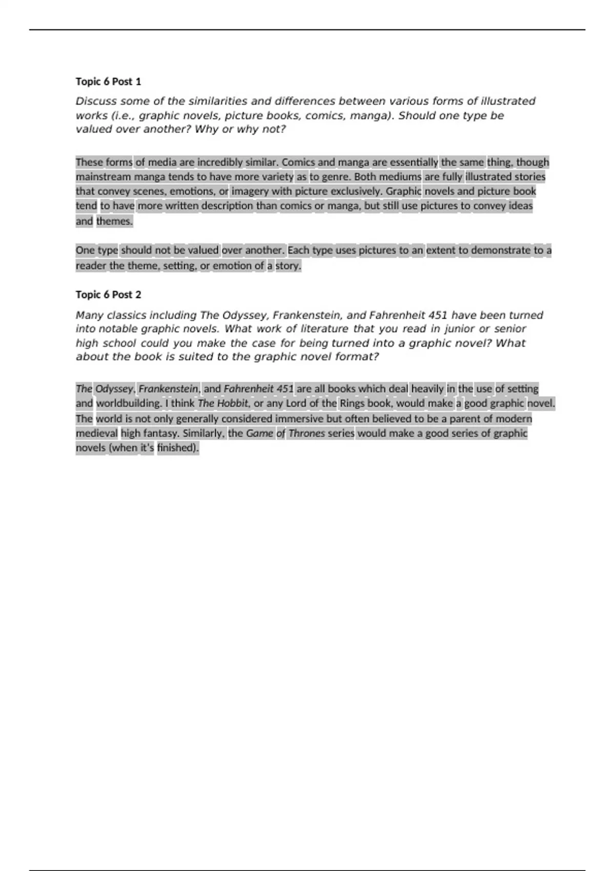 and worldbuilding. I think The Hobbit, or any Lord of the Rings book, would make a good graphic novel.
