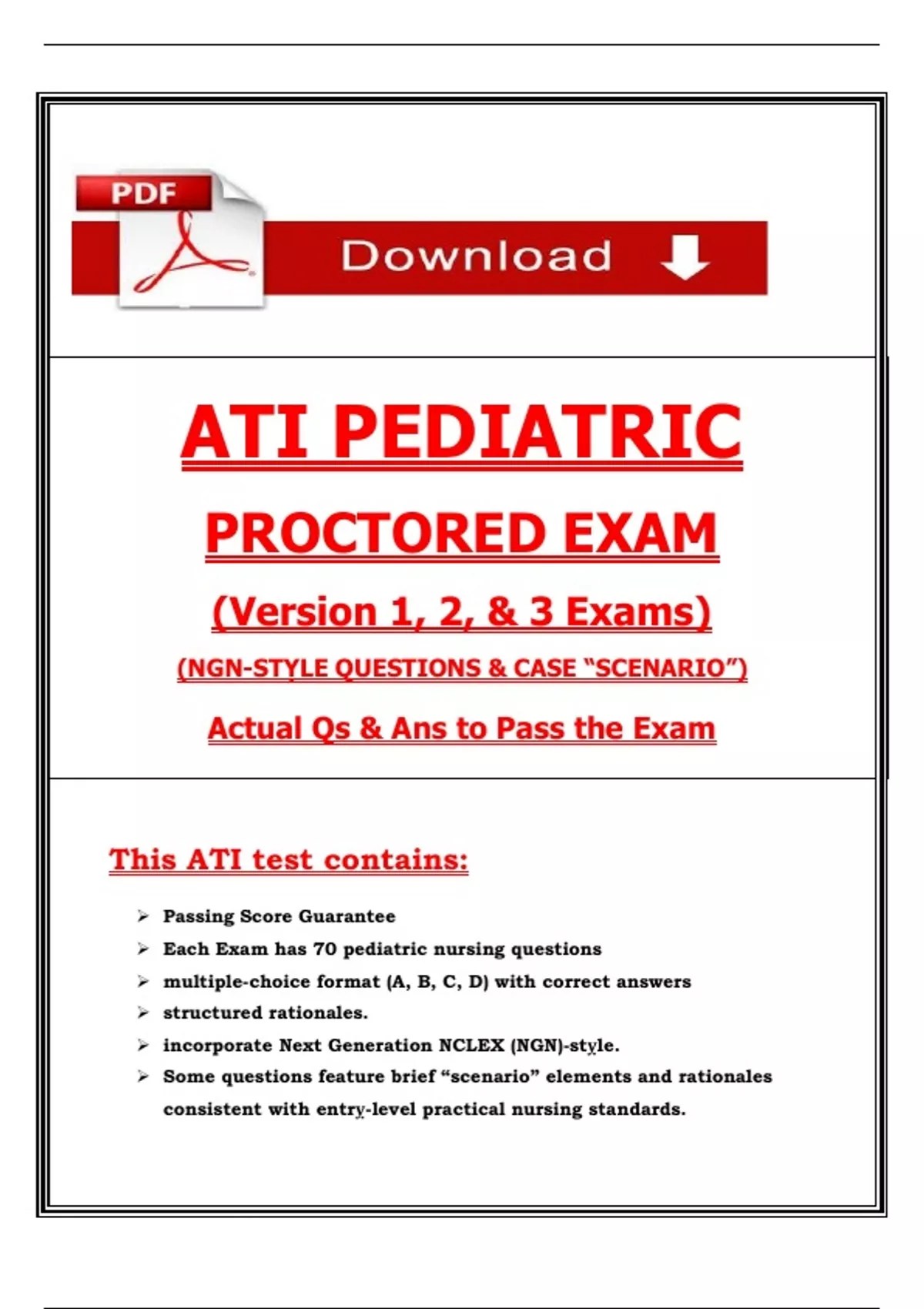 Each Exam has 70 pediatric nursing questions