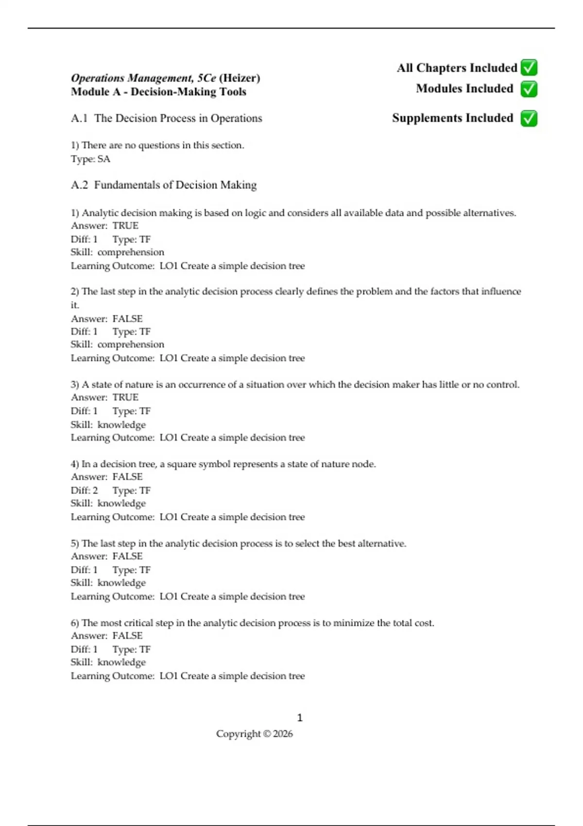 A.1 The Decision Process in Operations Supplements Included
