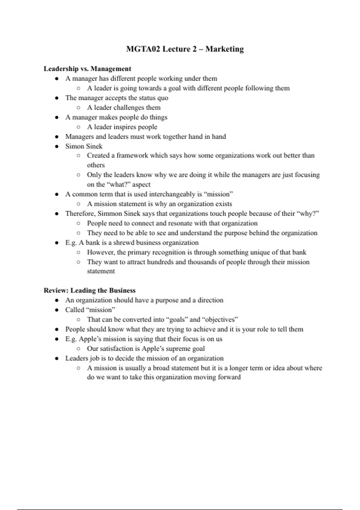 Leadership vs. Management