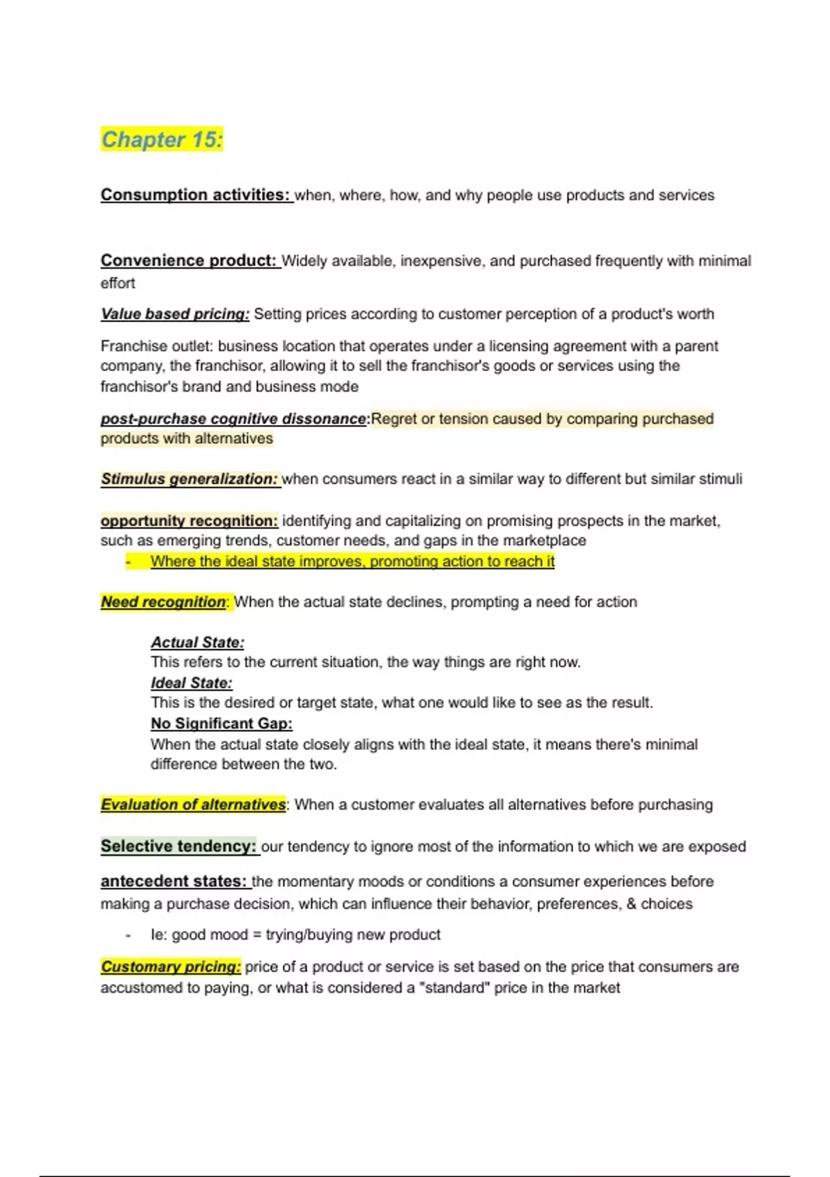 MOS (consumer behaviour) class + chapter notes