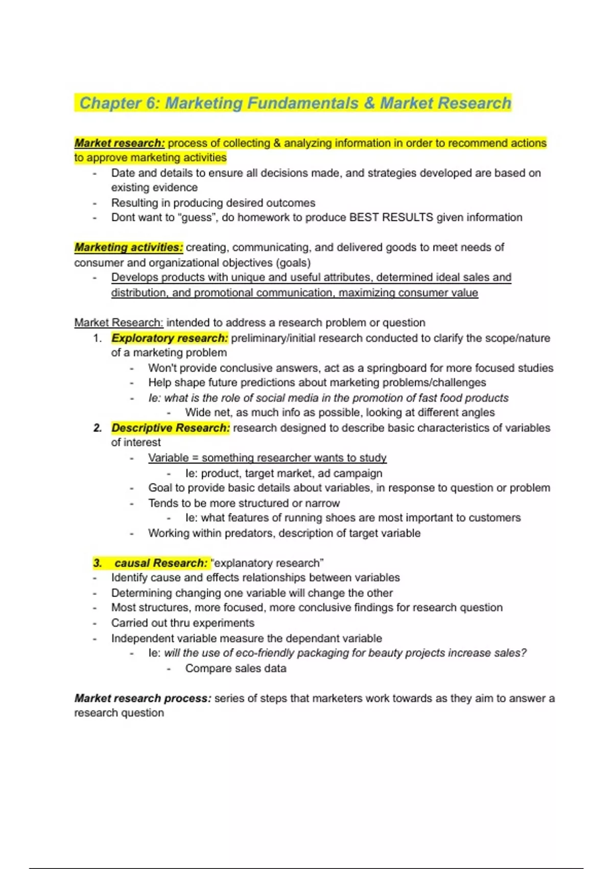 1.​ Exploratory research: preliminary/initial research conducted to clarify the scope/nature