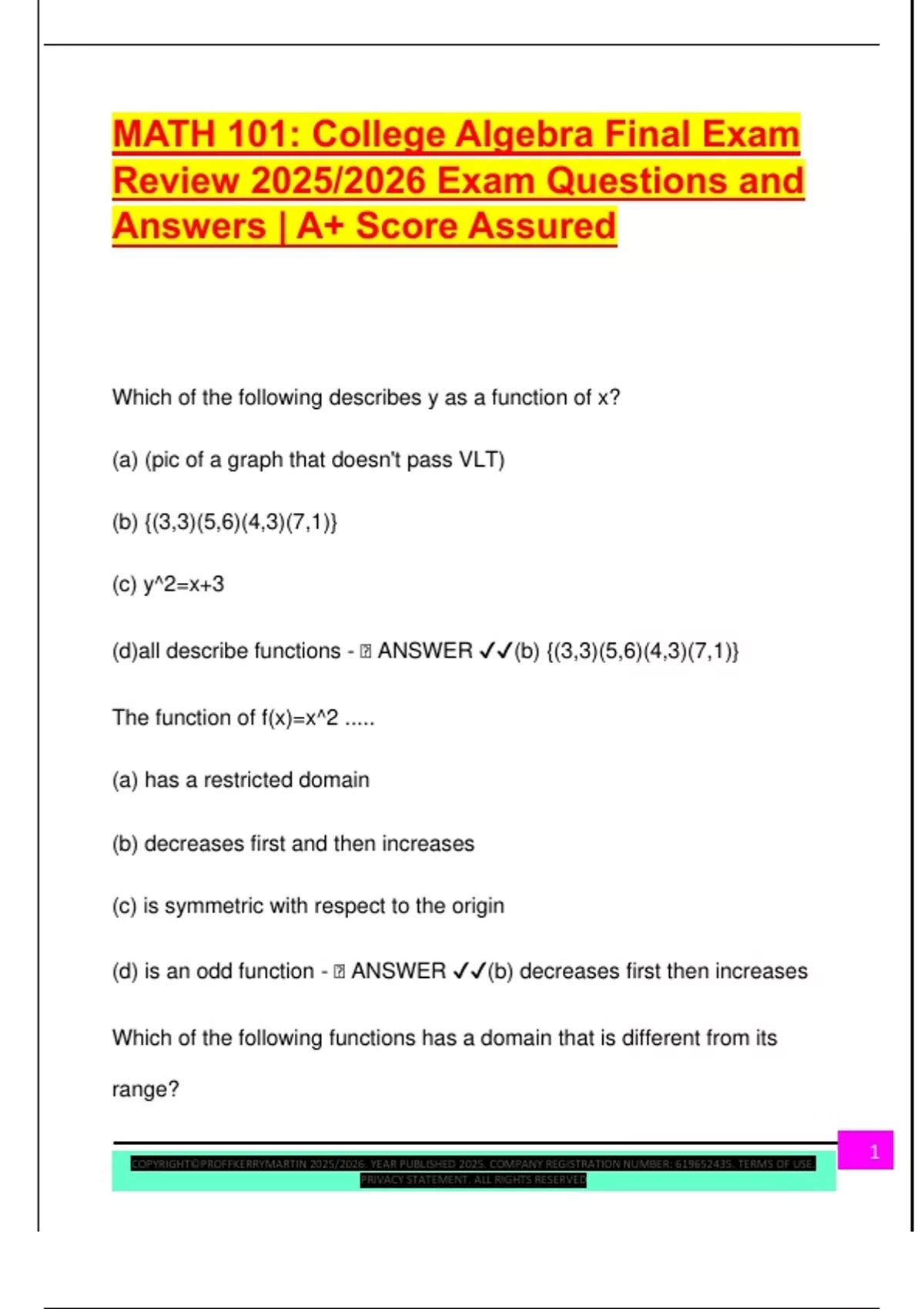(d)all describe functions - 🧠 ANSWER ✔✔(b) {(3,3)(5,6)(4,3)(7,1)}