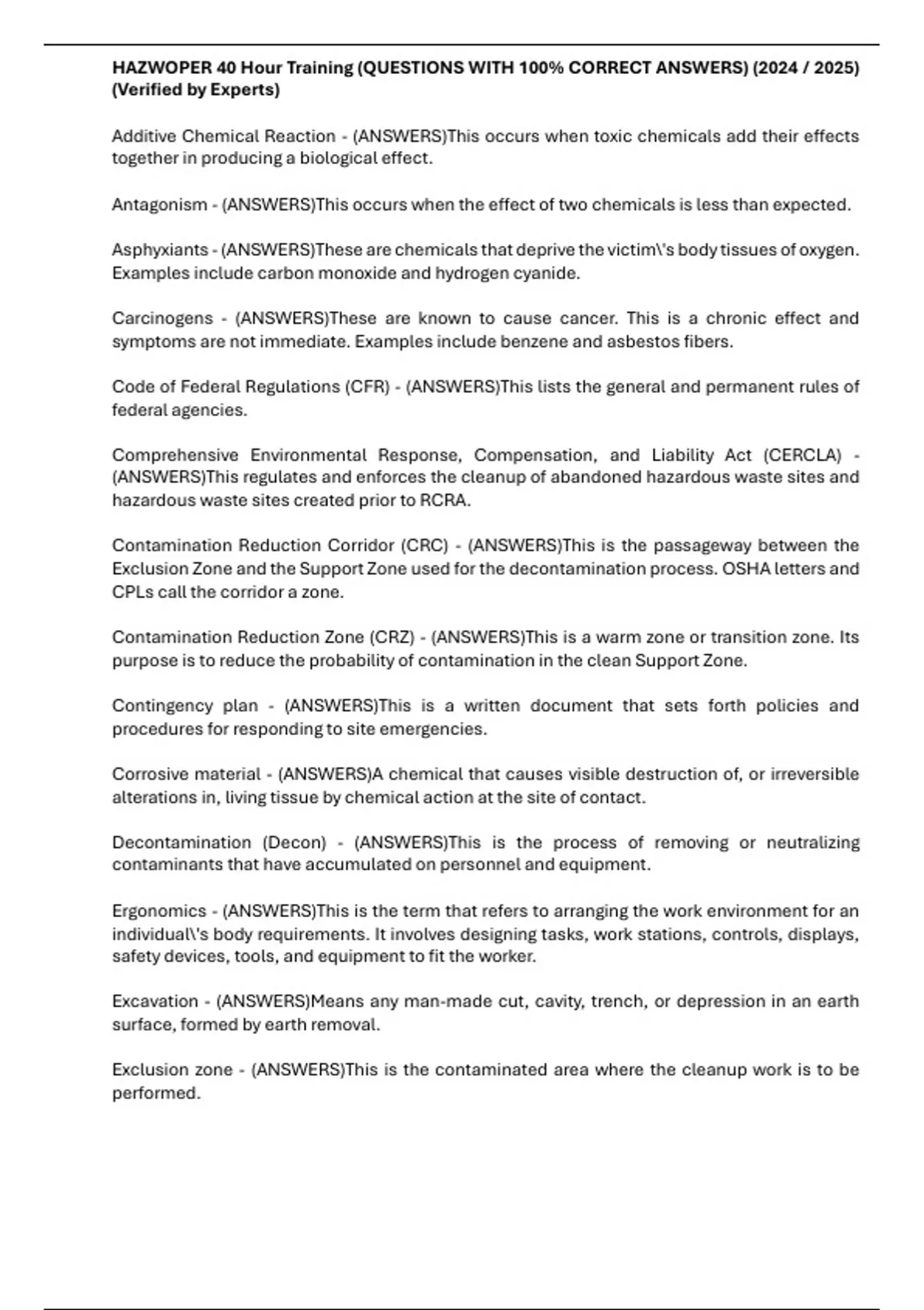 HAZWOPER 40 Hour Training (QUESTIONS WITH 100% CORRECT ANSWERS) (2024 / 2025) (Verified by Experts)