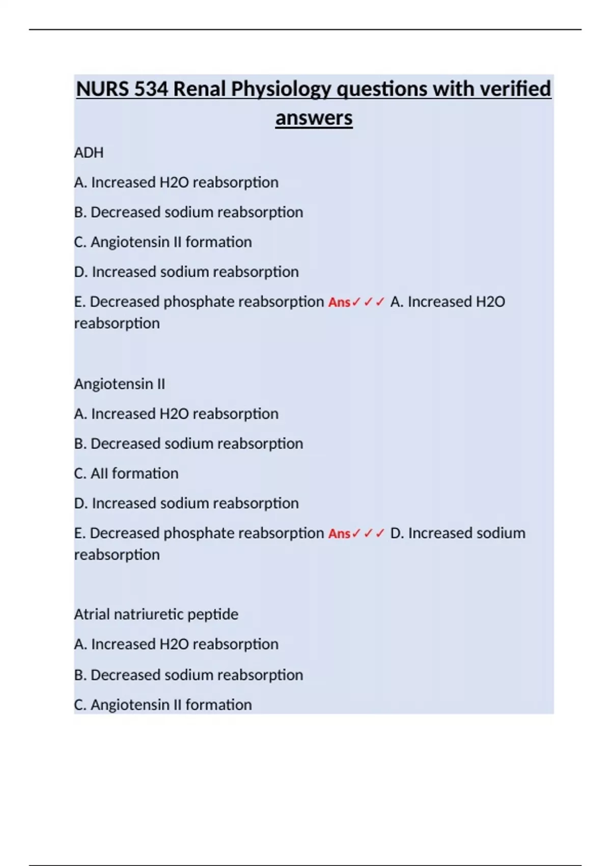 E. Decreased phosphate reabsorption Ans✓✓✓ B. Decreased sodium