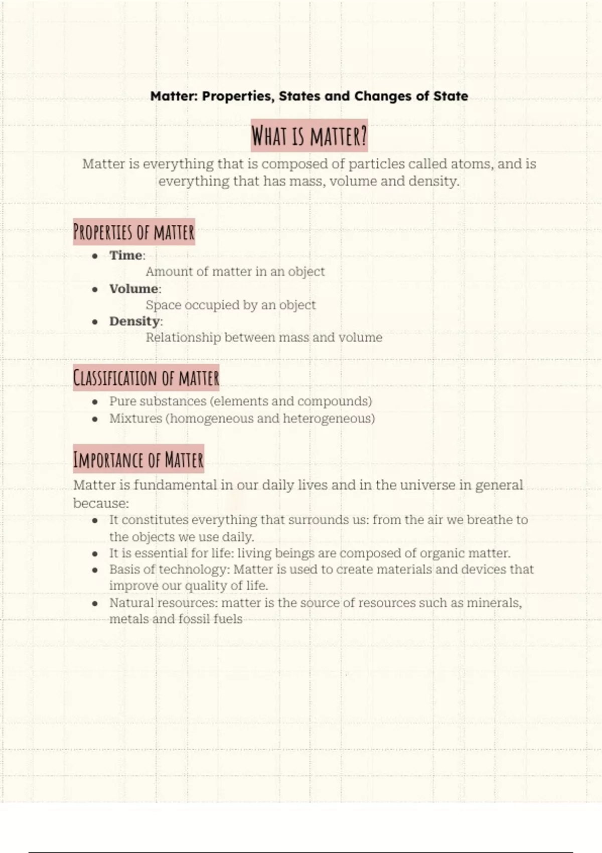 Summary Matter and its properties 11th grade