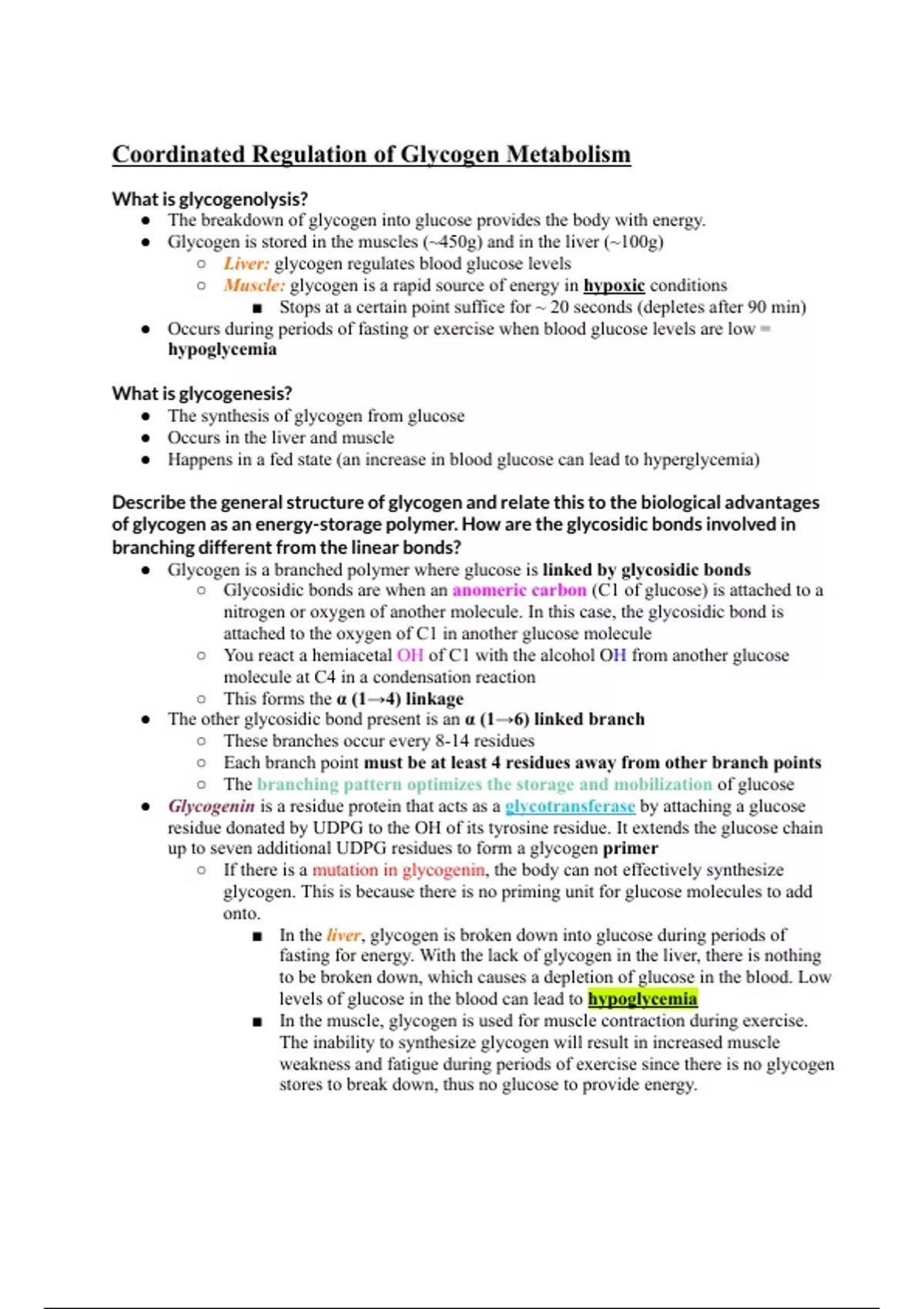 ○ Muscle: glycogen is a rapid source of energy in hypoxic conditions