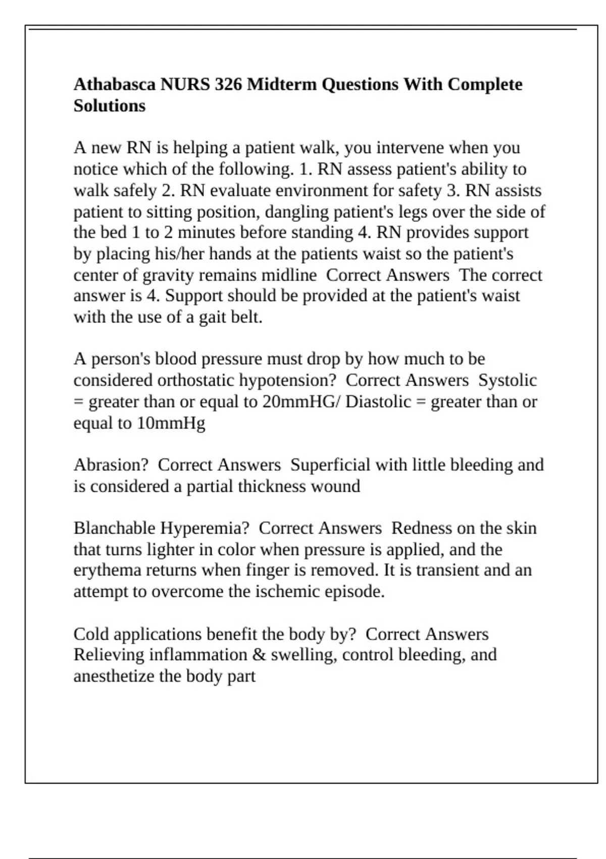 Athabasca NURS 326 Midterm Questions With Complete Solutions