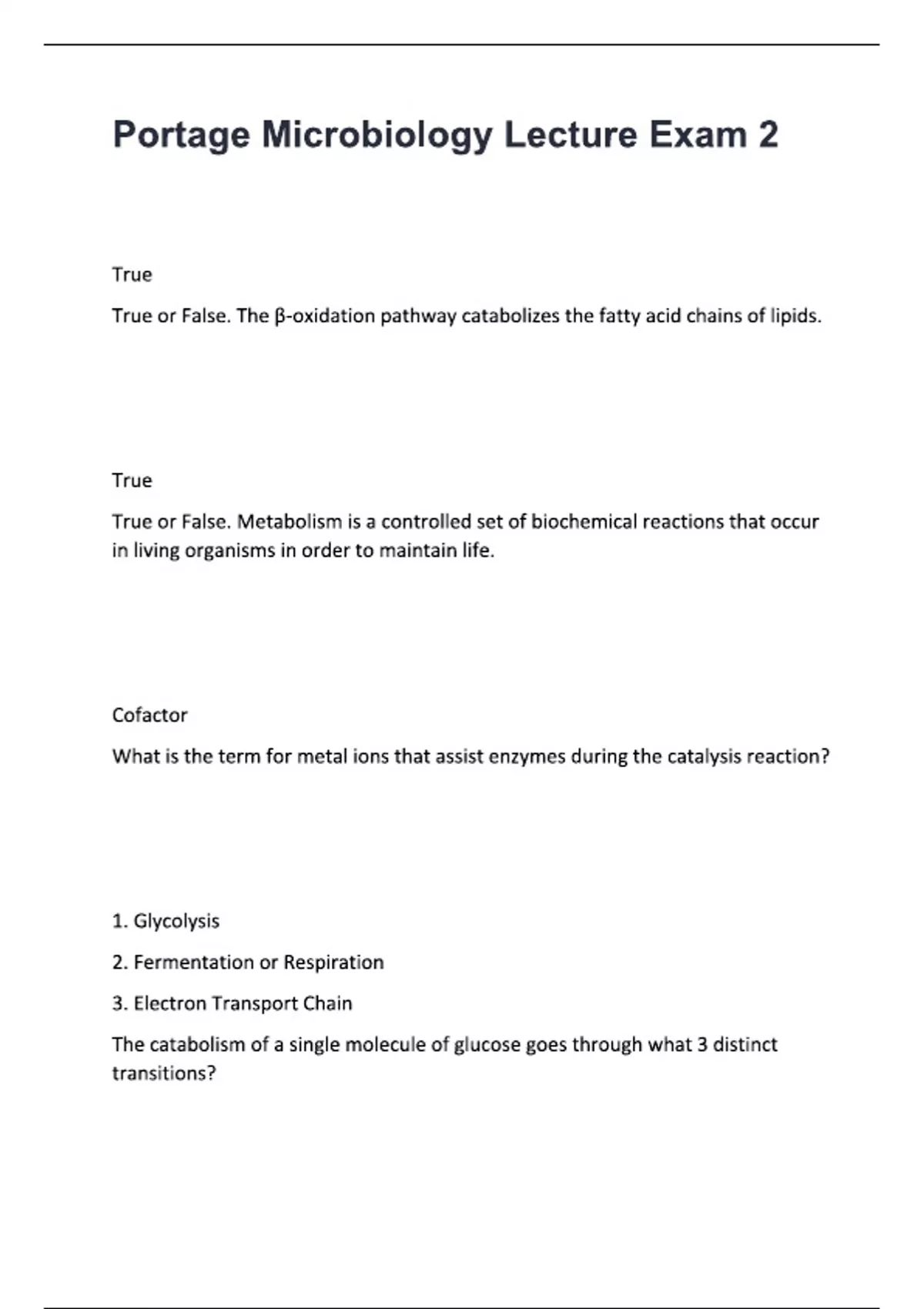Portage Microbiology Lecture Exam 2 questions and answers.