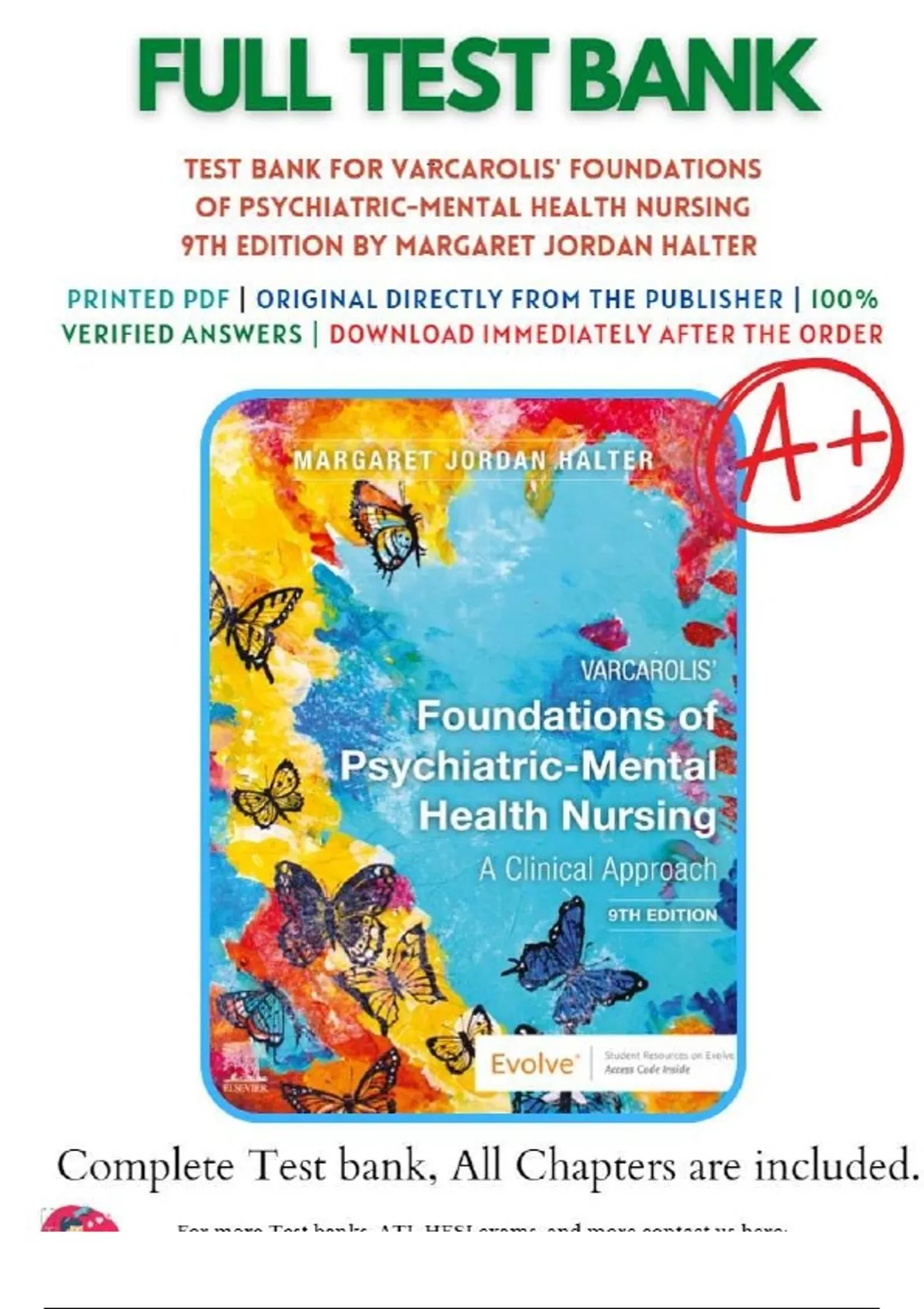 Test bank For Varcarolis Foundations of Psychiatric Mental Health Nursing 9th Edition by Margaret Halter |9780323697071 |Chapter 1-36 |All Chapters with Answers and Rationals