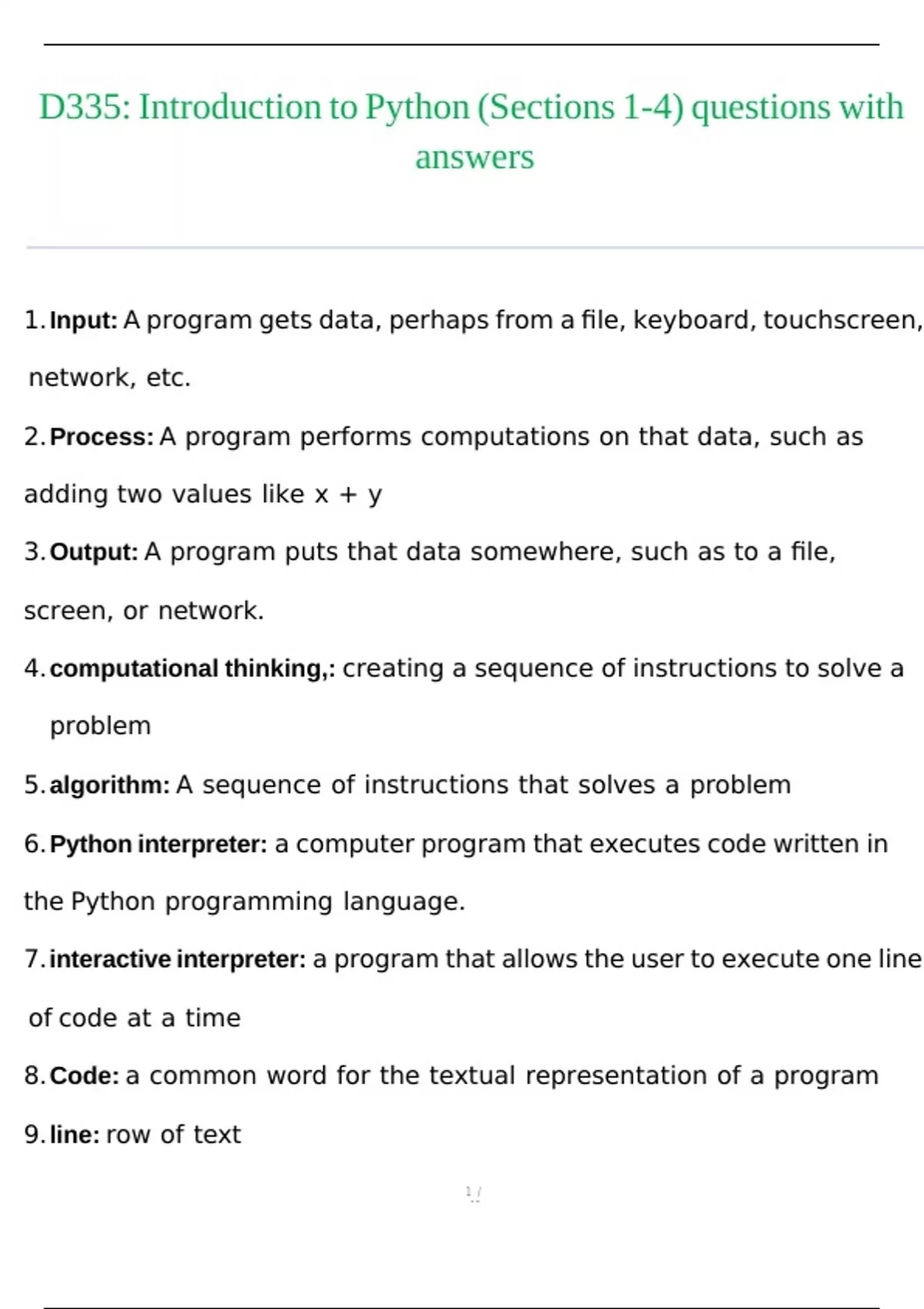 1.Input: A program gets data, perhaps from a file, keyboard, touchscreen,