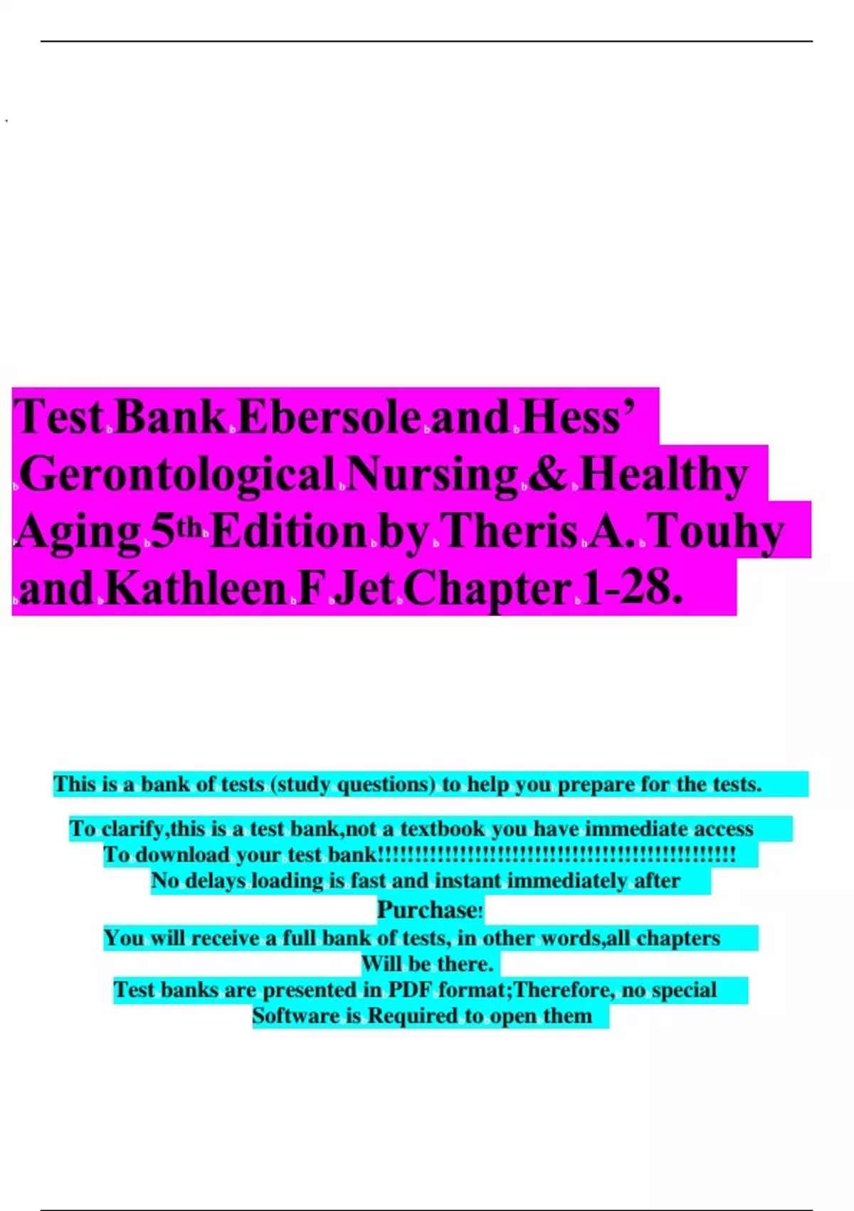 Test banks are presented in PDF format;Therefore, no special