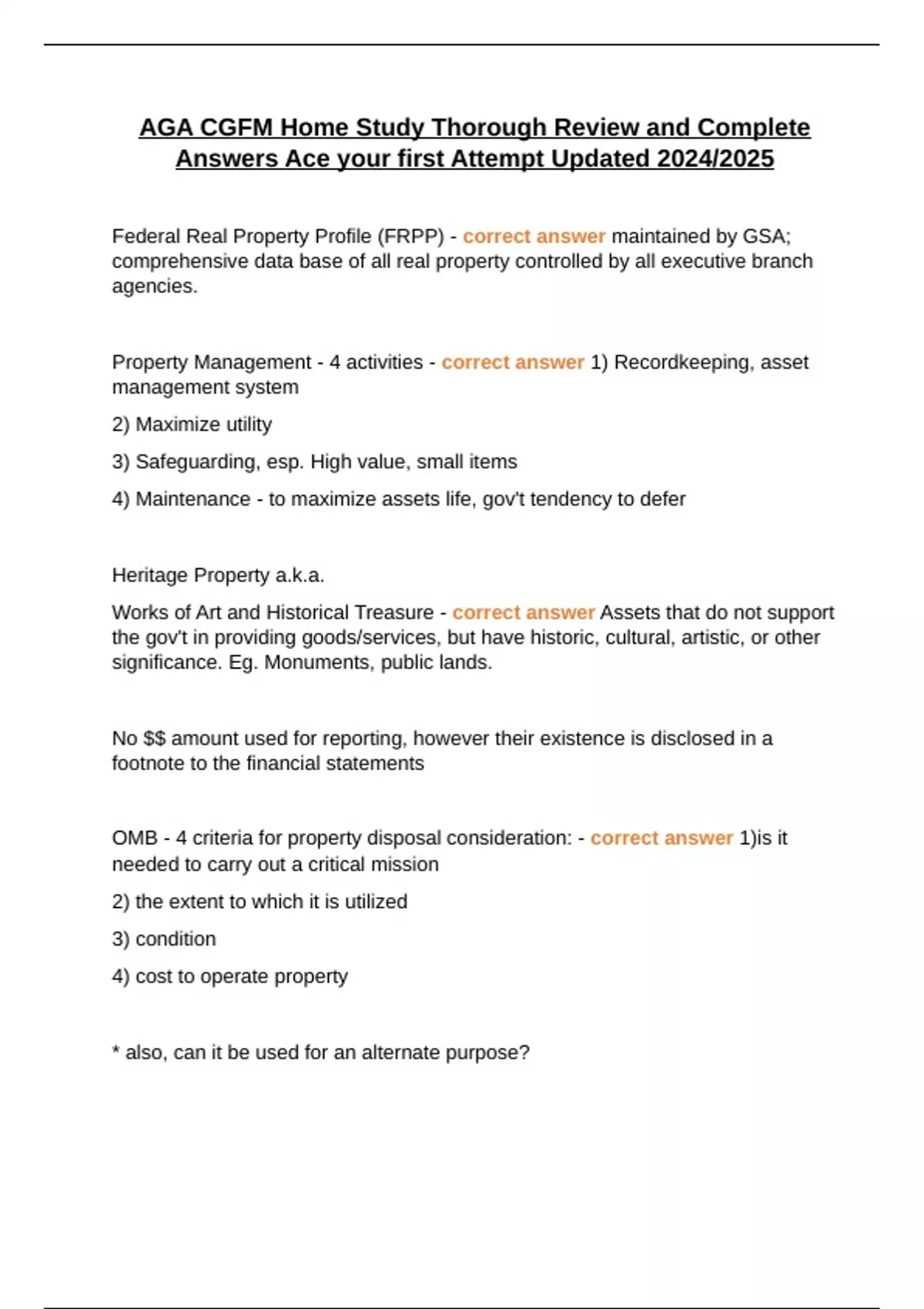 OMB - 4 criteria for property disposal consideration: - correct answer 1)is it