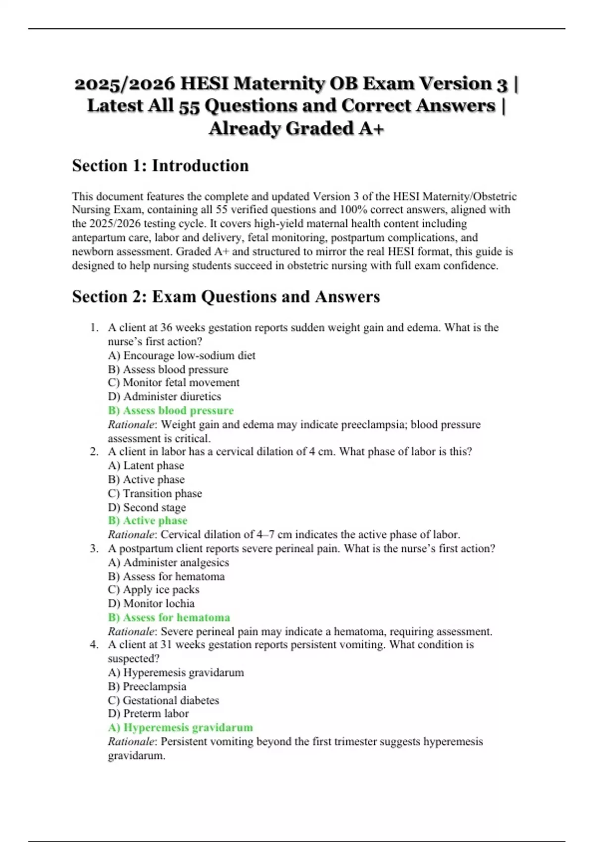 This document features the complete and updated Version 3 of the HESI Maternity/Obstetric