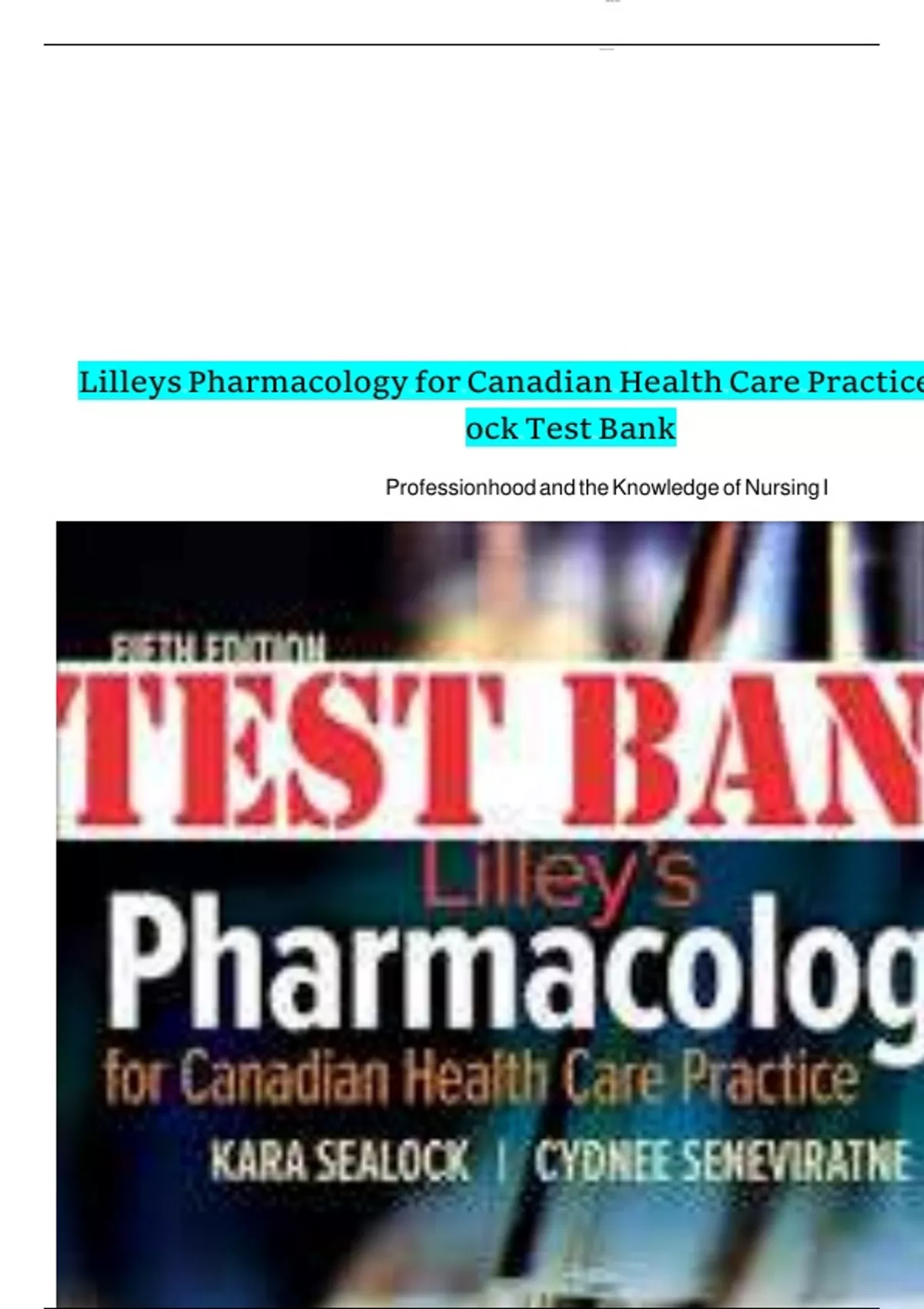 Test Bank For Lilleys Pharmacology for Canadian Health Care Practice 5th Edition Sealock | All Chapters 1-58| Complete Guide With Solutions| Revised Edition