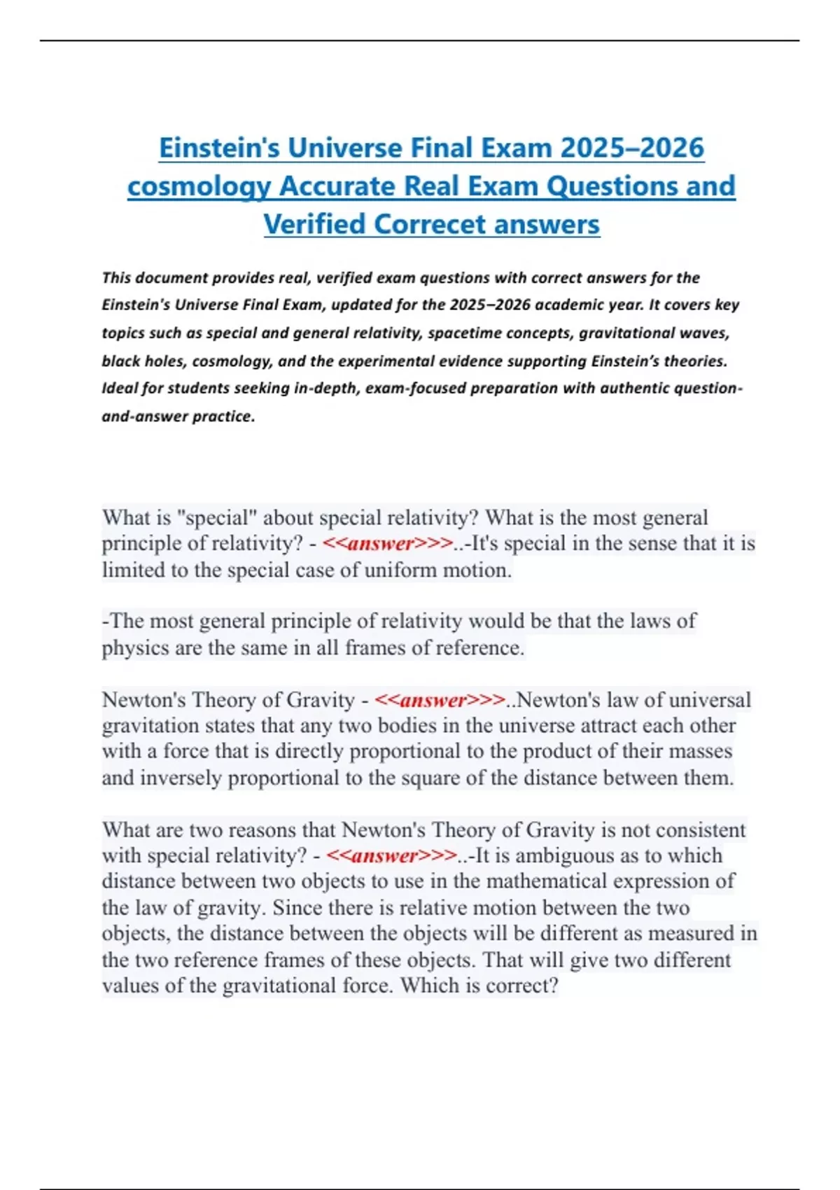 Einstein's Universe Final Exam, updated for the 2025–2026 academic year. It covers key