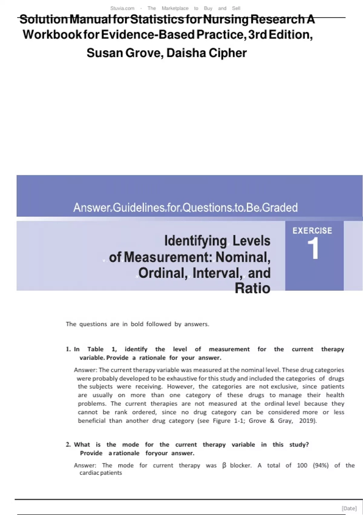 Test Bank - for Statistics for Nursing Research A Workbook for Evidence-Based Practice 3rd Edition by Susan K. Grove, All Chapters | Complete Guide A+