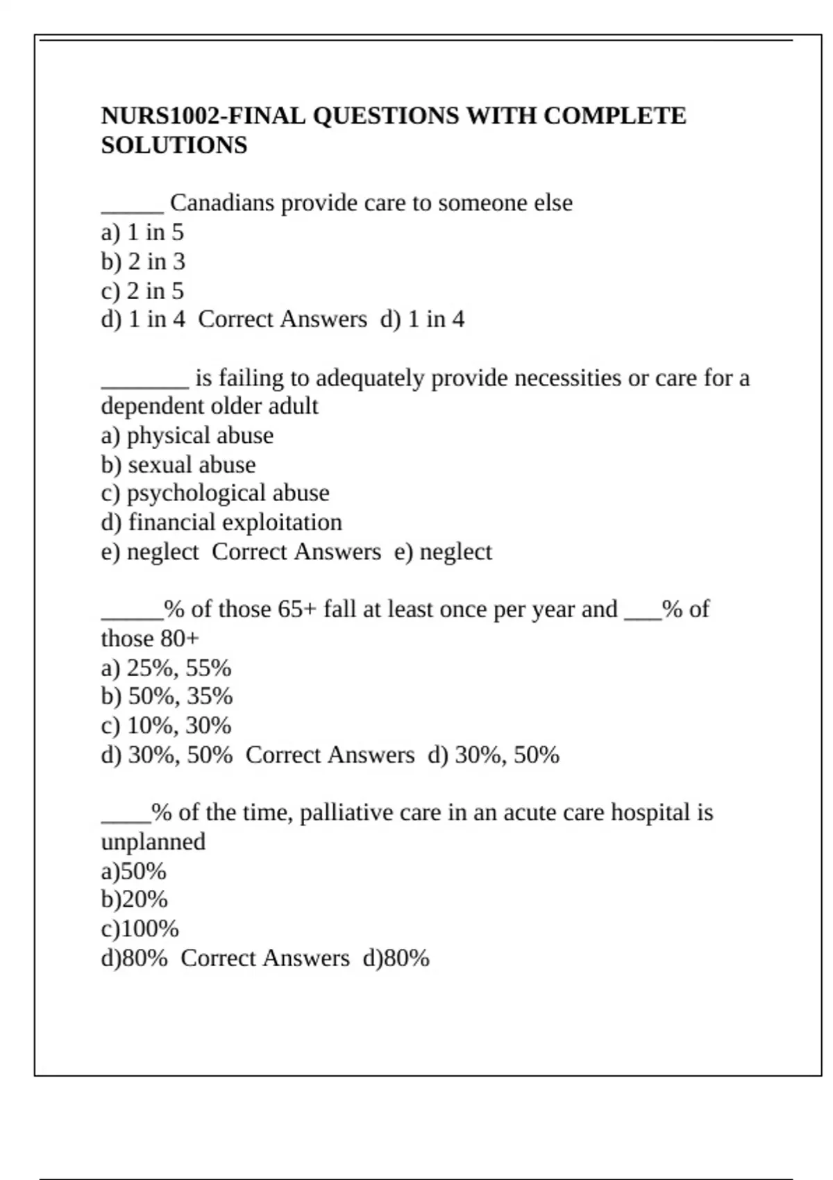 NURS1002-FINAL QUESTIONS WITH COMPLETE