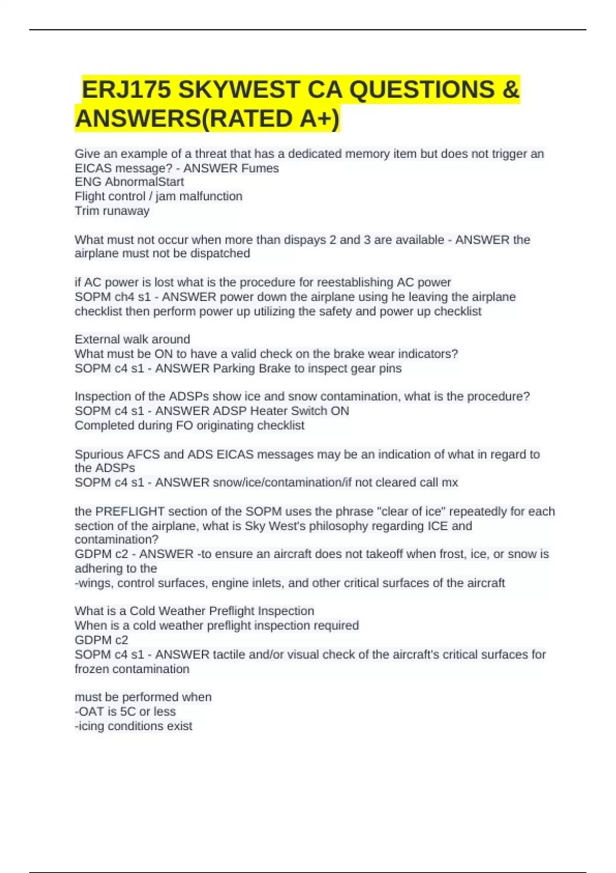 the PREFLIGHT section of the SOPM uses the phrase "clear of ice" repeatedly for each