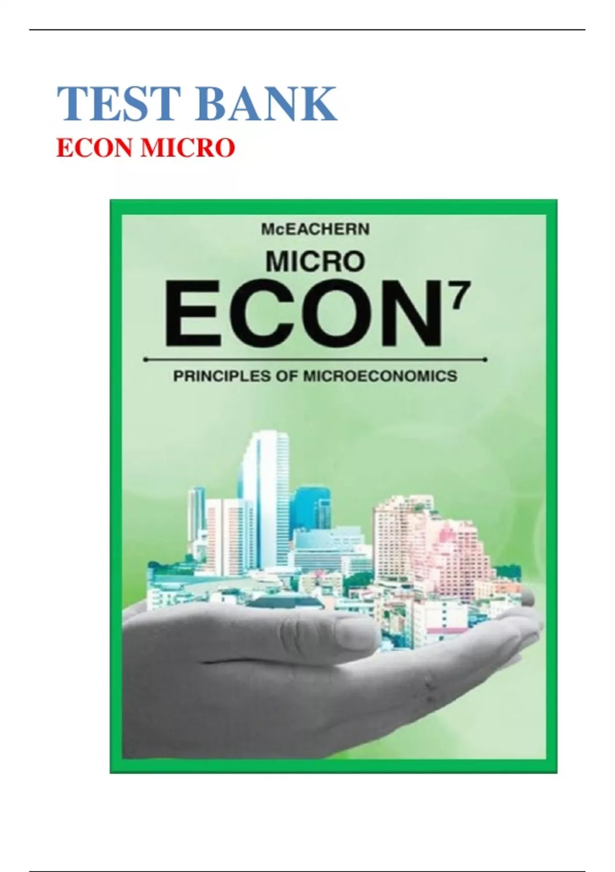 Test Bank for ECON MICRO, 7th Edition by William A. McEachern|9780357901960| All Chapters| LATEST