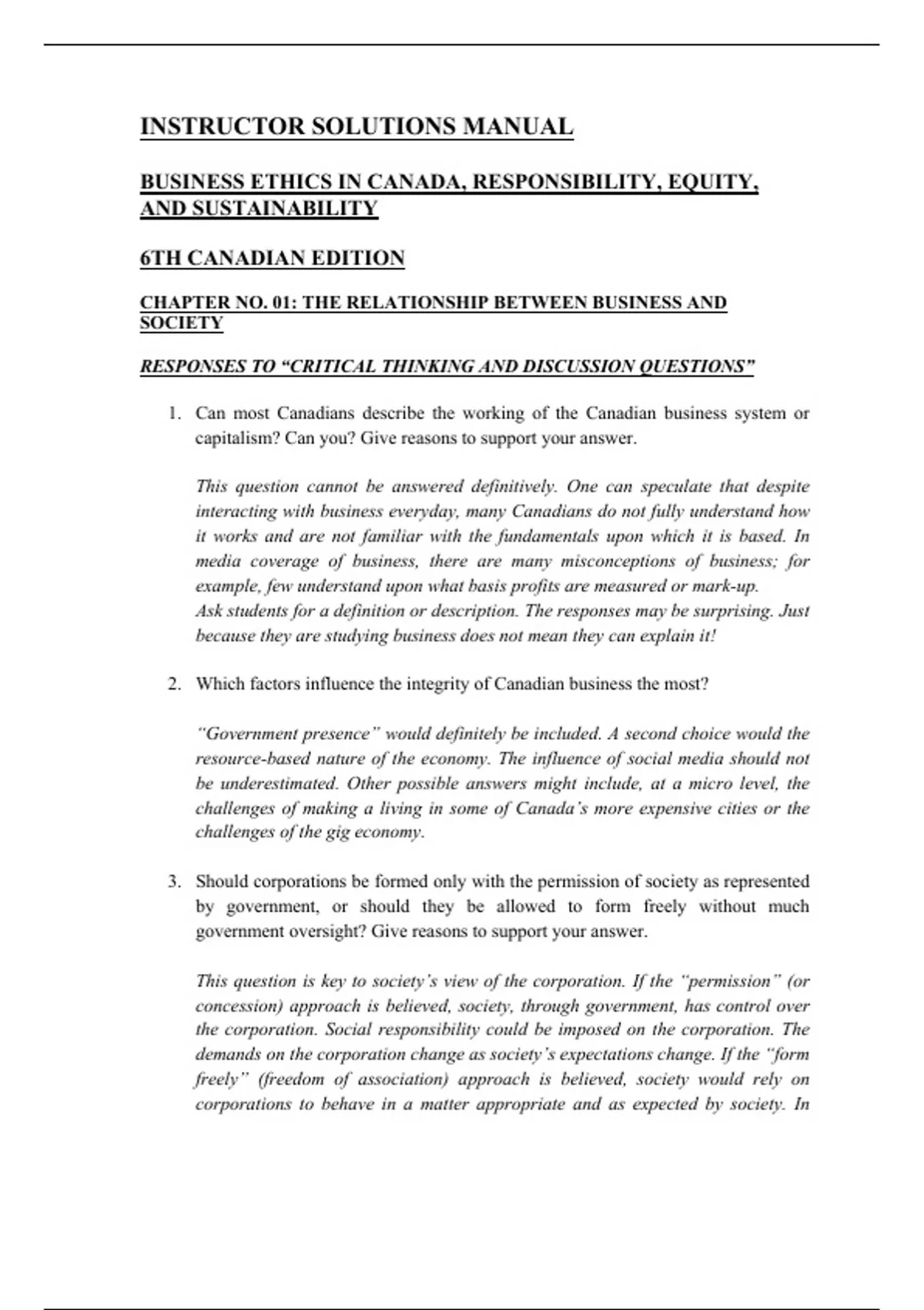 RESPONSES TO “CRITICAL THINKING AND DISCUSSION QUESTIONS”