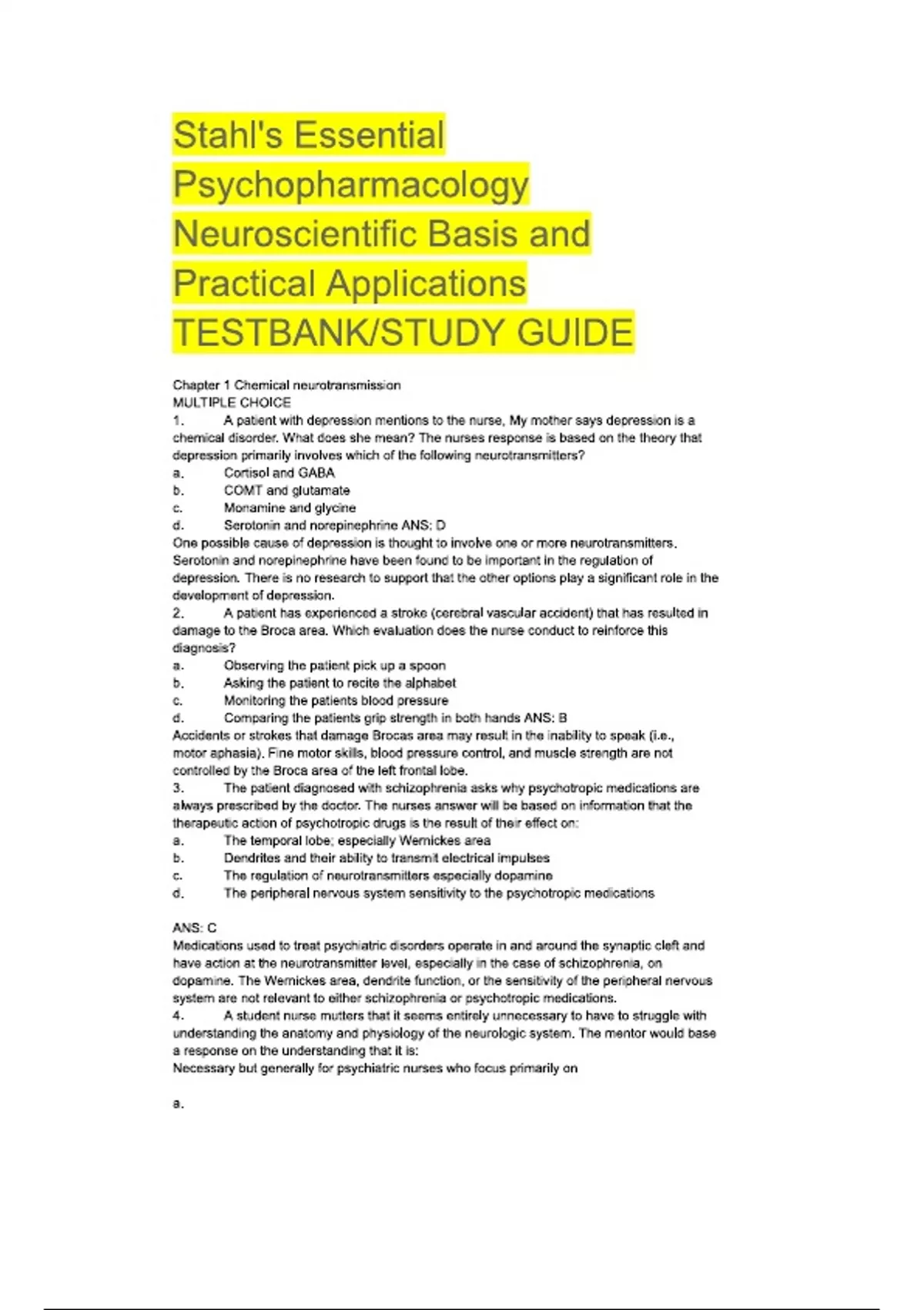 Stahl's Essential Psychopharmacology Neuroscientific Basis and Practical Applications 5th Edition Test Bank