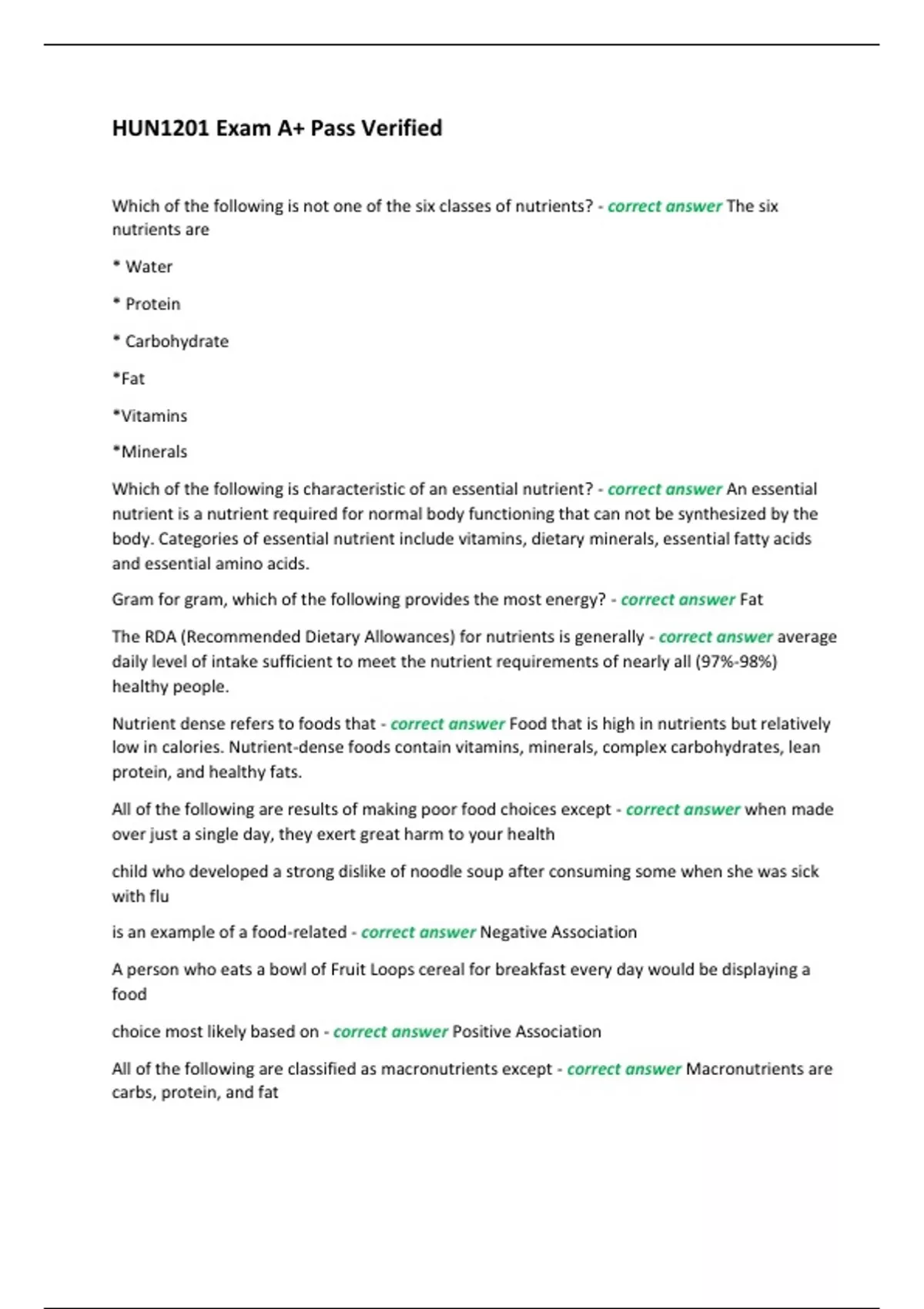 HUN1201 Exam A+ Pass Verified