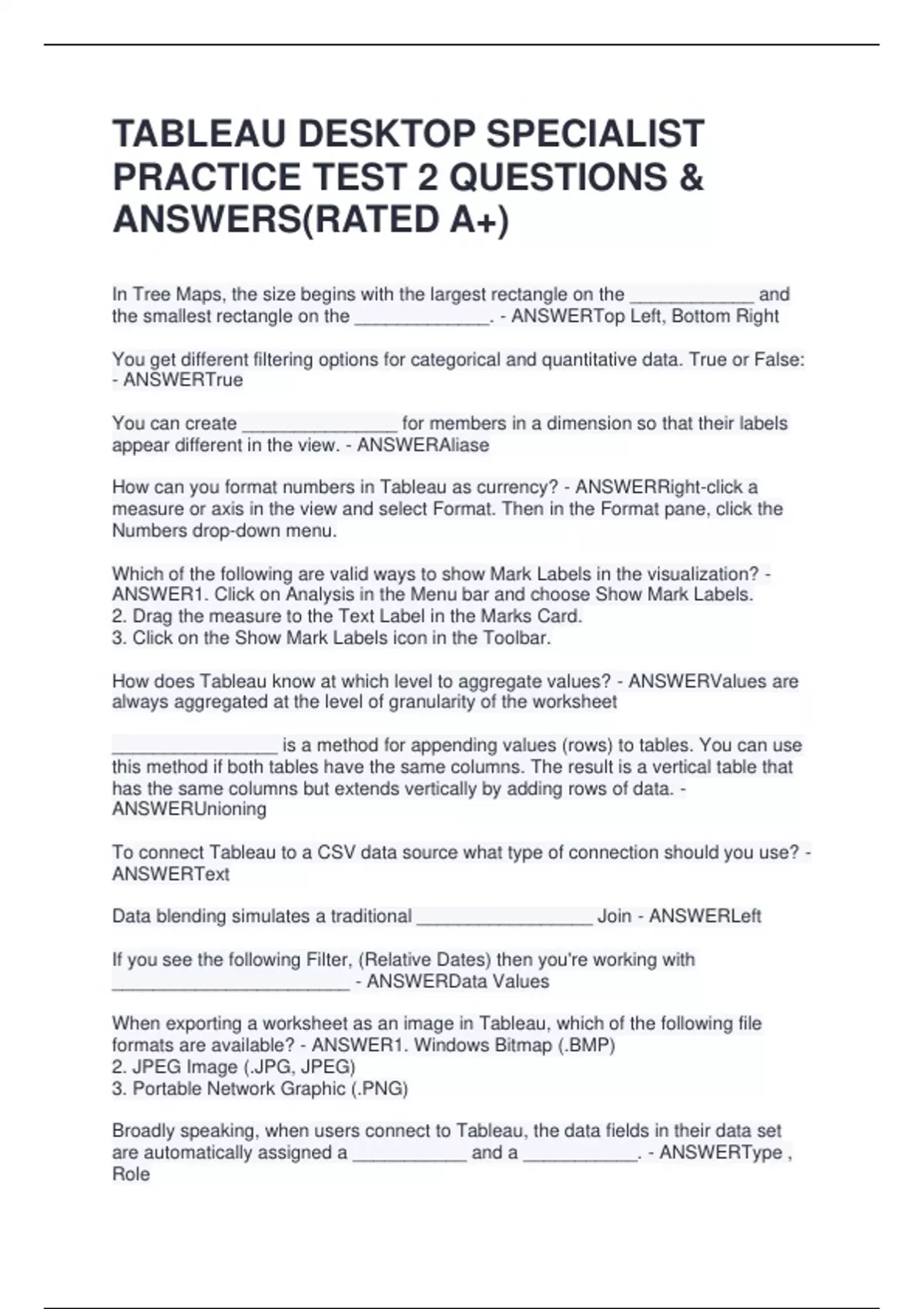 TABLEAU DESKTOP SPECIALIST PRACTICE TEST 2 QUESTIONS & ANSWERS(RATED A+)