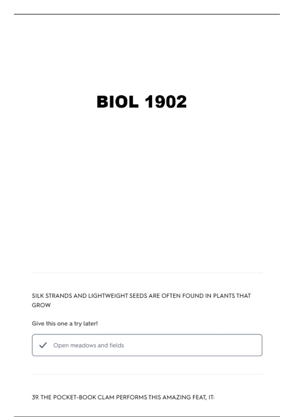BIOL 1902 FINAL EXAM QUESTIONS AND VERIFIED ANSWERS