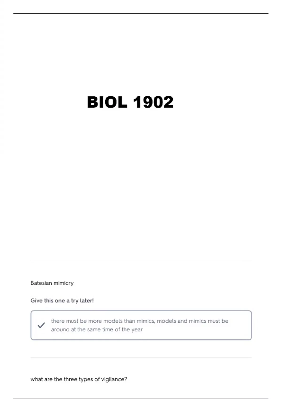 BIOL 1902 LECTURES 1-6 QUESTIONS AND VERIFIED ANSWERS