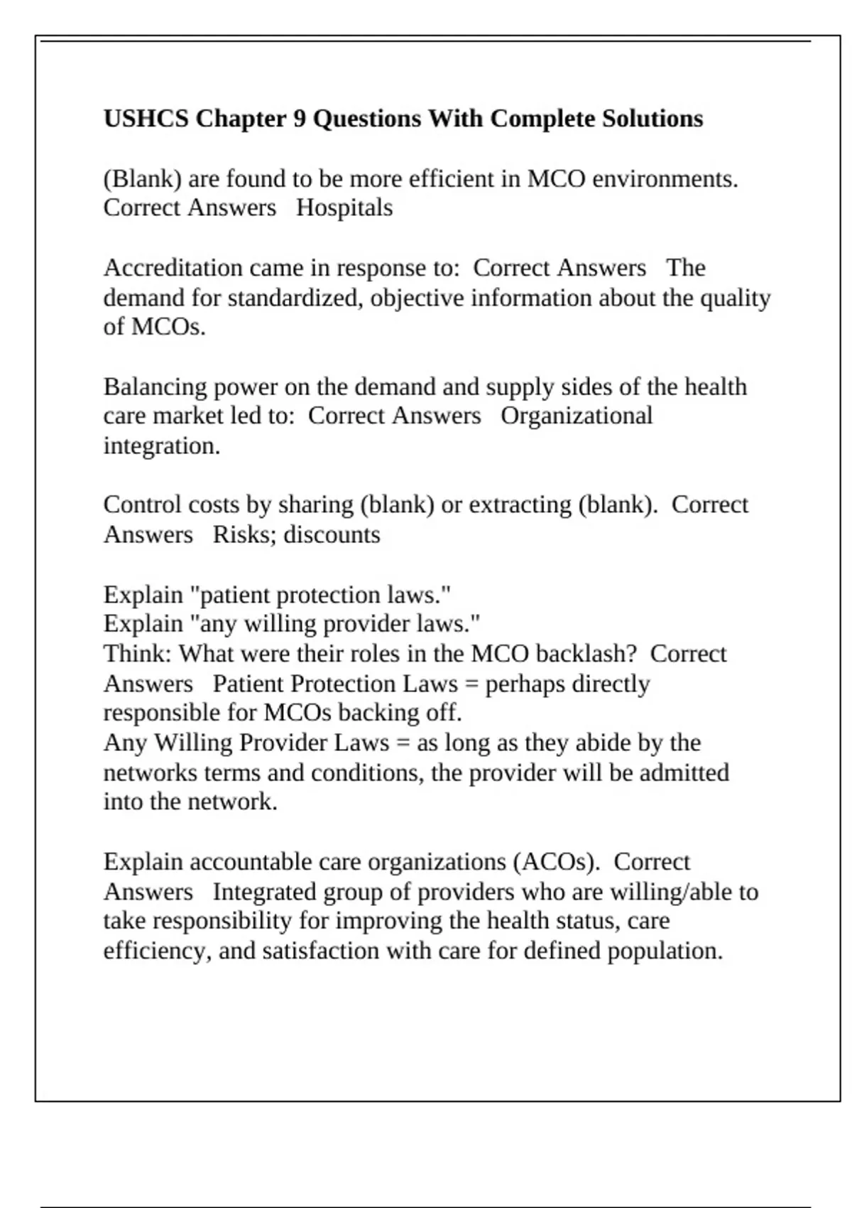 USHCS Chapter 9 Questions With Complete Solutions