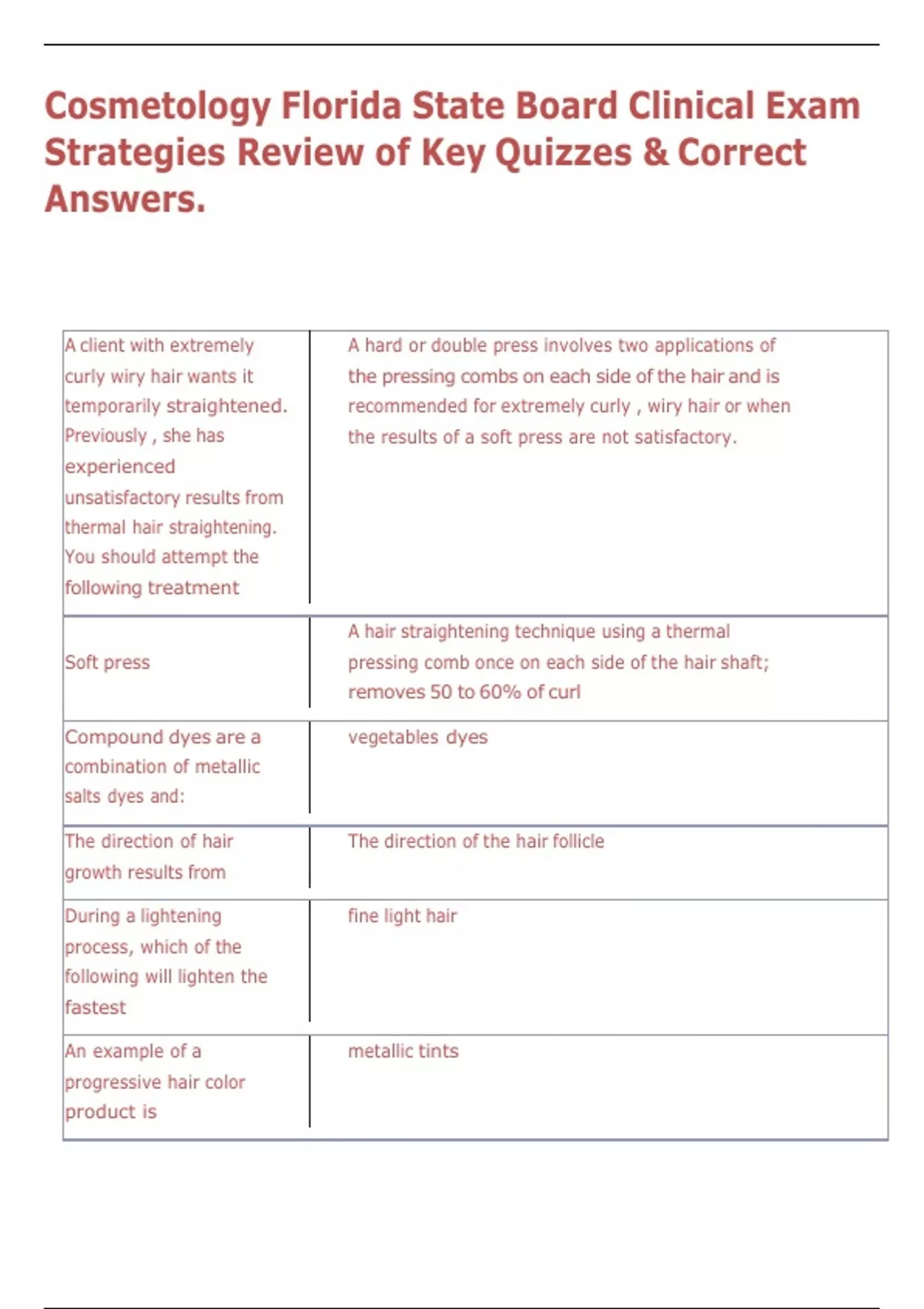 , 8/11/25, 4:39 AM Cosmetology Florida State Board Clinical Exam Strategies Review of Key Quizzes & Correct Answers.