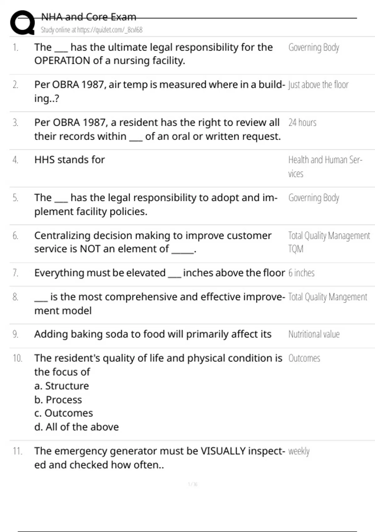 20. The nursing home survey inspection process focuses Outcomes