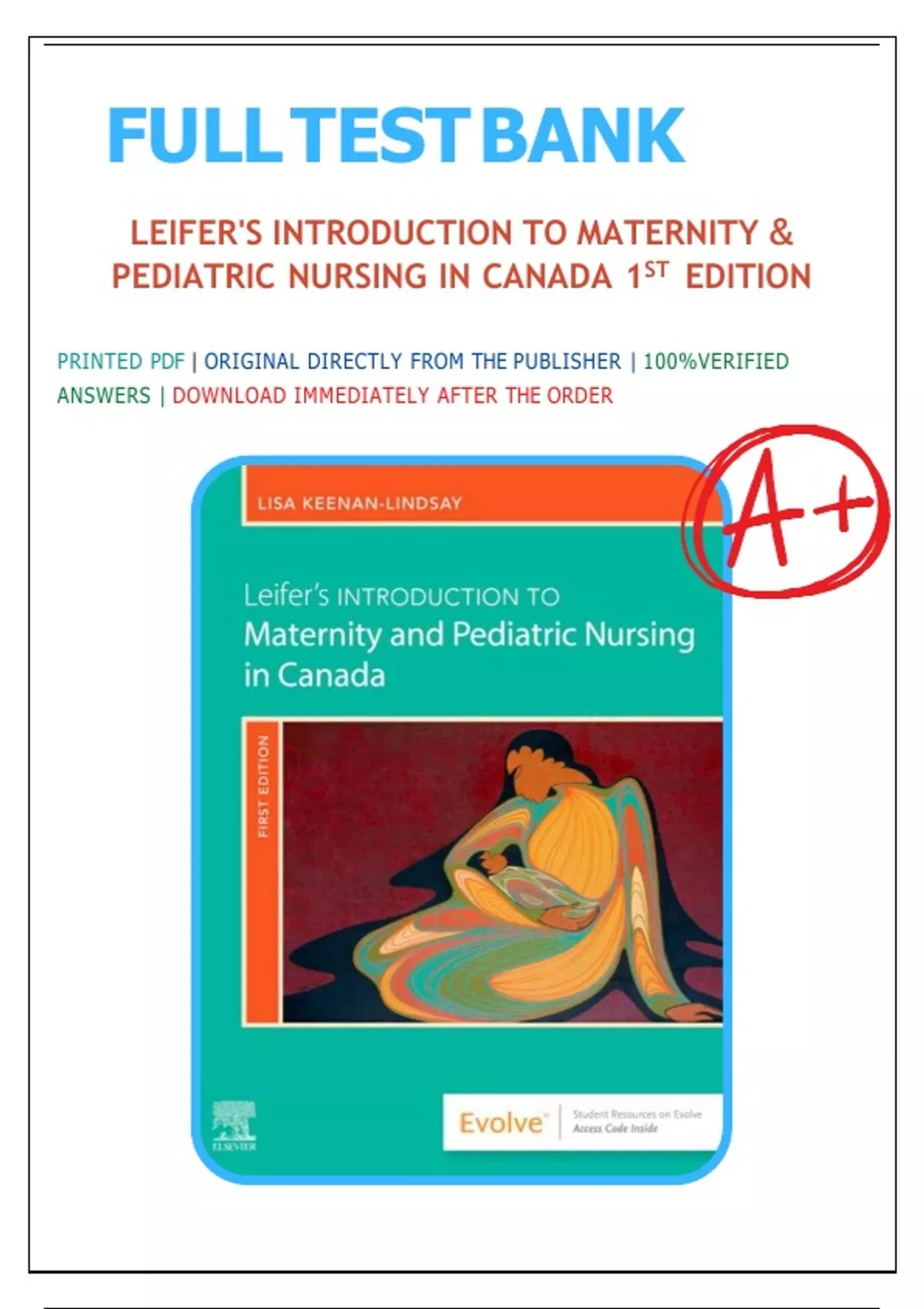 Test Bank For Leifer's Introduction to Maternity & Pediatric Nursing in Canada 1st Canadian Edition| 9781926648873| All Chapters| LATEST