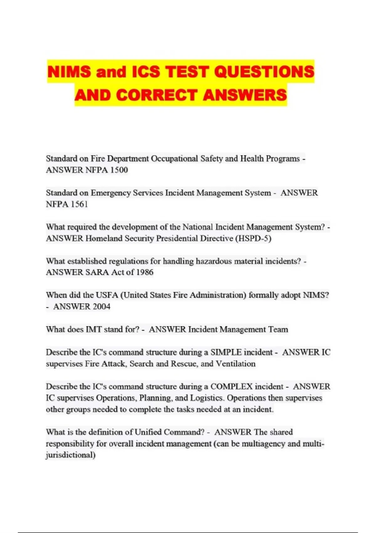 NIMS and ICS TEST QUESTIONS AND CORRECT ANSWERS