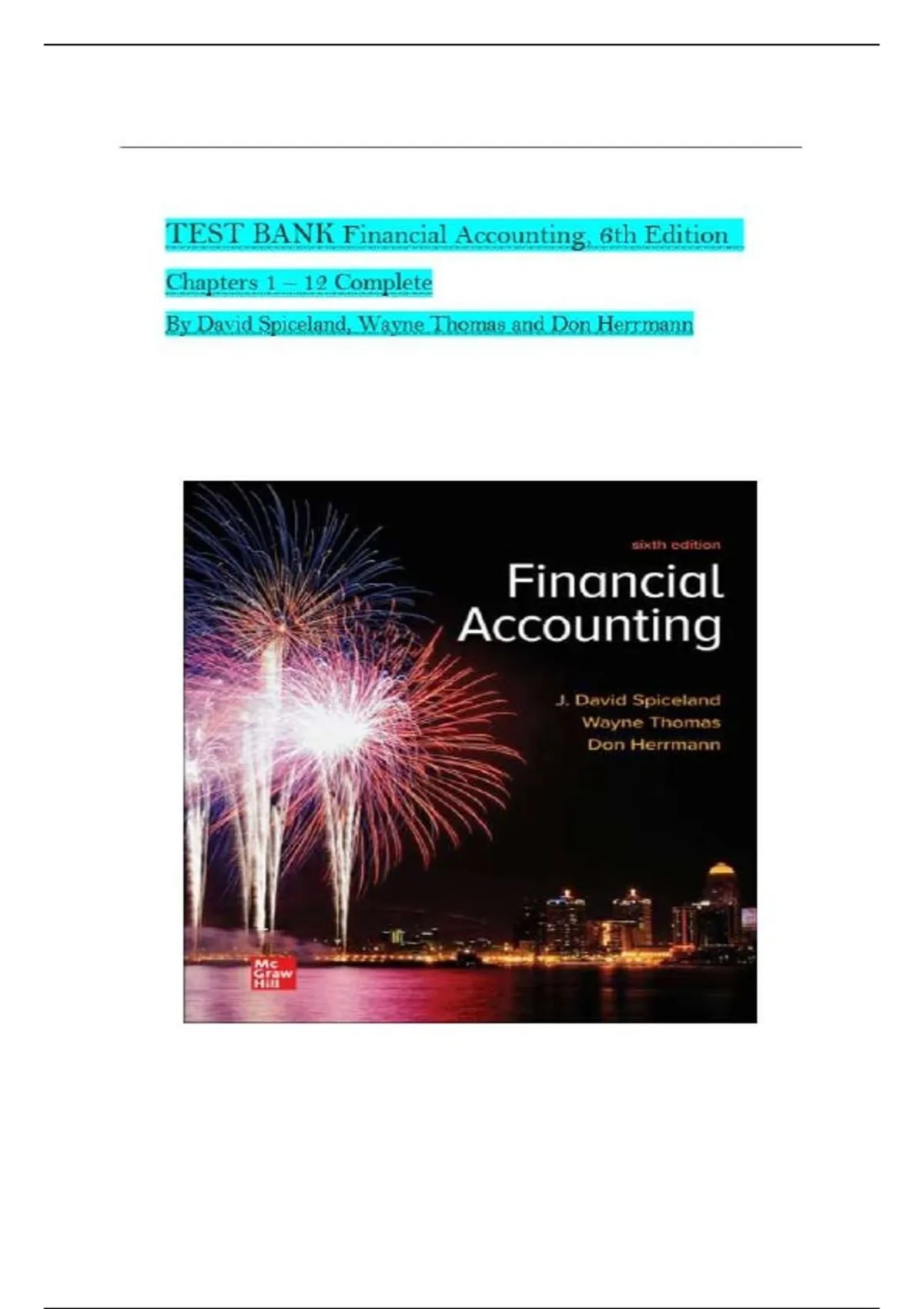 TEST BANK Financial Accounting, 6th Edition Chapters 1 – 12 Complete By David Spiceland, Wayne Thomas and Don Herrmann