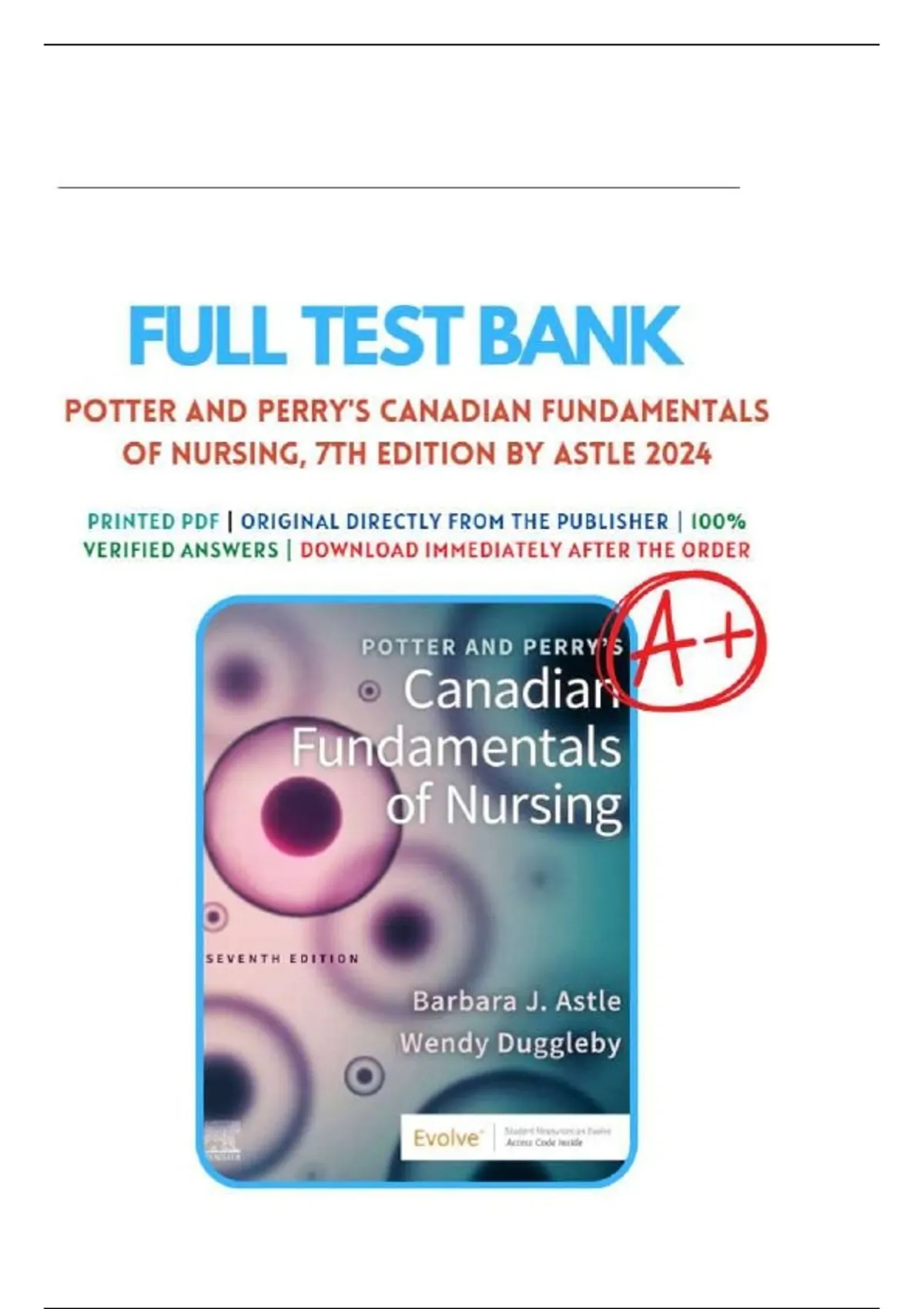 Test Bank For Potter and Perry's Canadian Fundamentals of Nursing, 7th Edition by Astle | 9780323870658 | |Chapter 1-49 |All Chapters with Answers and Rationals