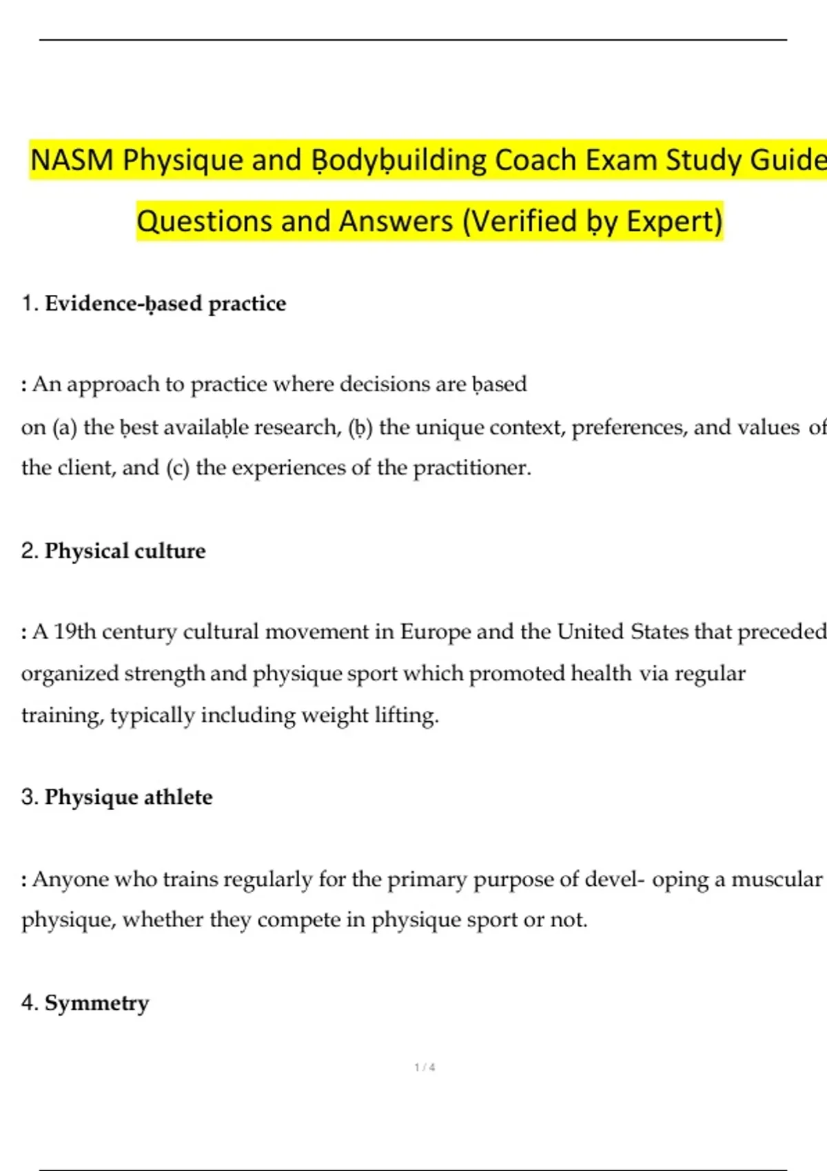 NASM Physique and Bodybuilding Coach Exam Study Guide Questions and Answers (Verified Answers) || 100% VERIFIED // A+ GRADED 2025/2026