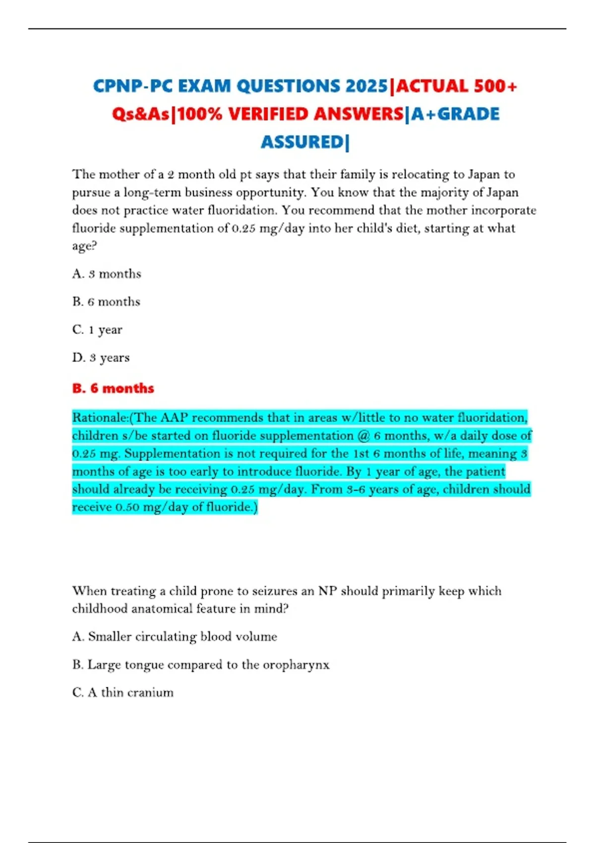 CPNP-PC EXAM QUESTIONS 2025|ACTUAL 500+ Qs&As|100% VERIFIED ANSWERS|A+GRADE ASSURED|