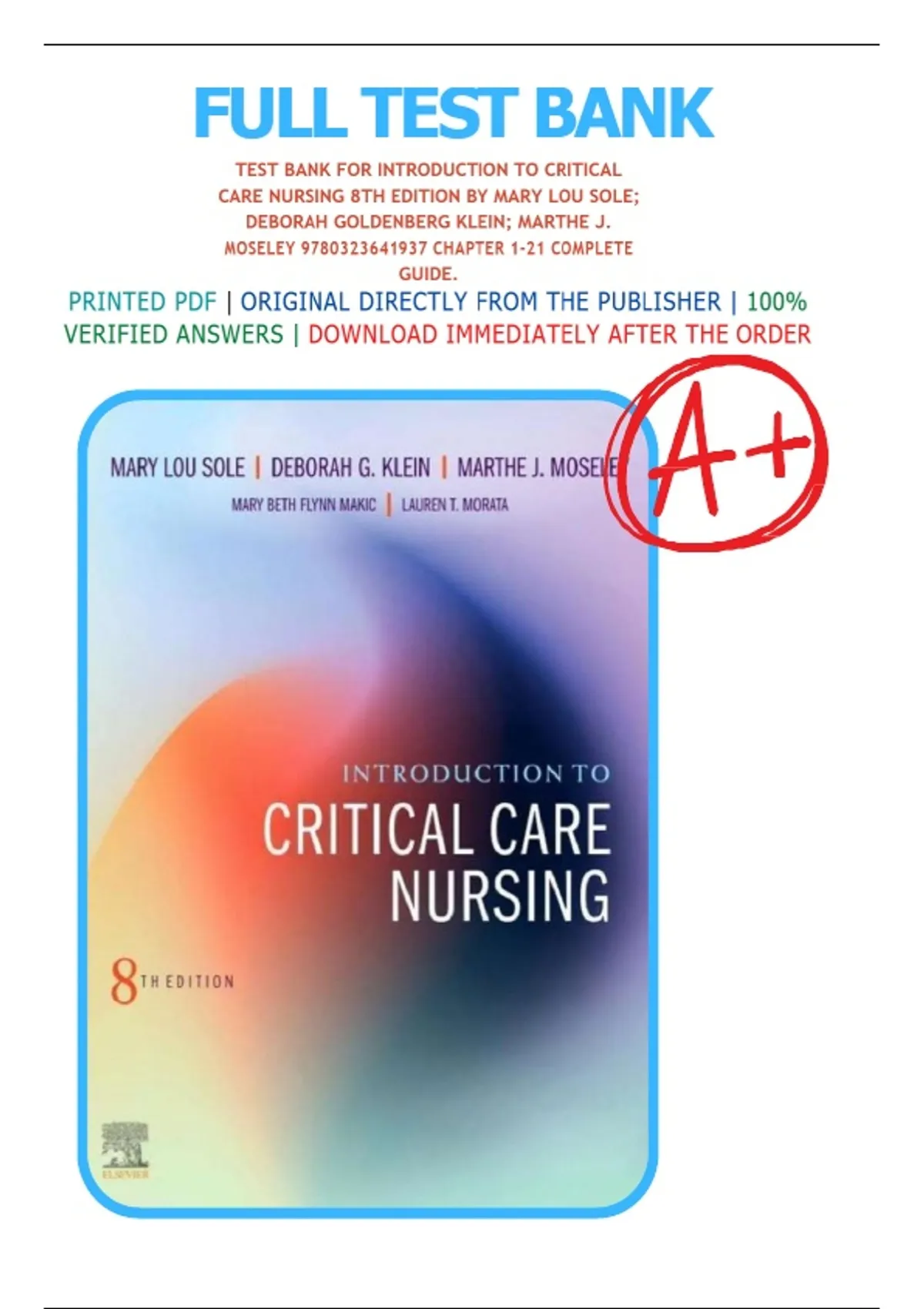 Test Bank For Introduction to Critical Care Nursing 8th Edition by Mary Lou Sole| 9780323641937| All Chapters 1-21| LATEST